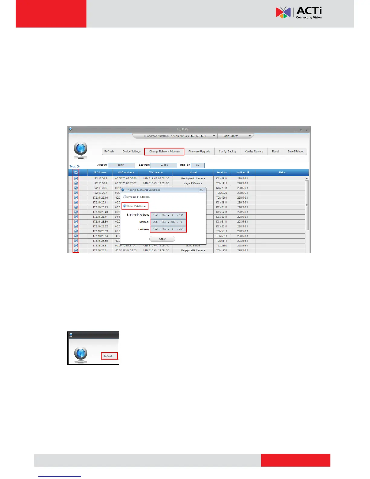 Later, by pressing the “Refresh” button of the IP Utility, you will be able to see the list of
