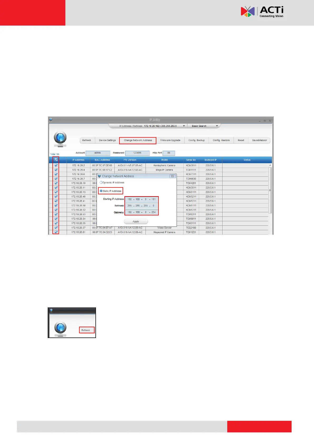Later, by pressing the “Refresh” button of the IP Utility, you will be able to see the list of