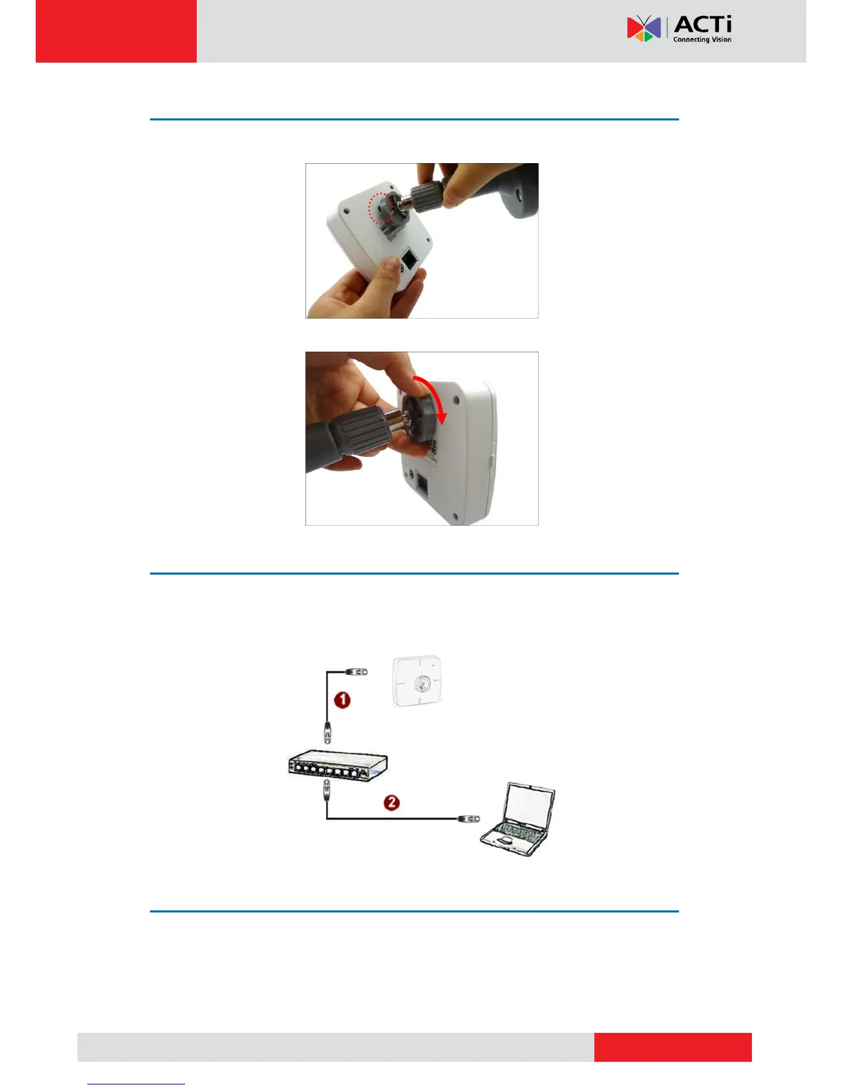 ACTi E12A - Step 3: Install the Camera; Step 4: Connect to Network; Step 5: Access the Camera Live View