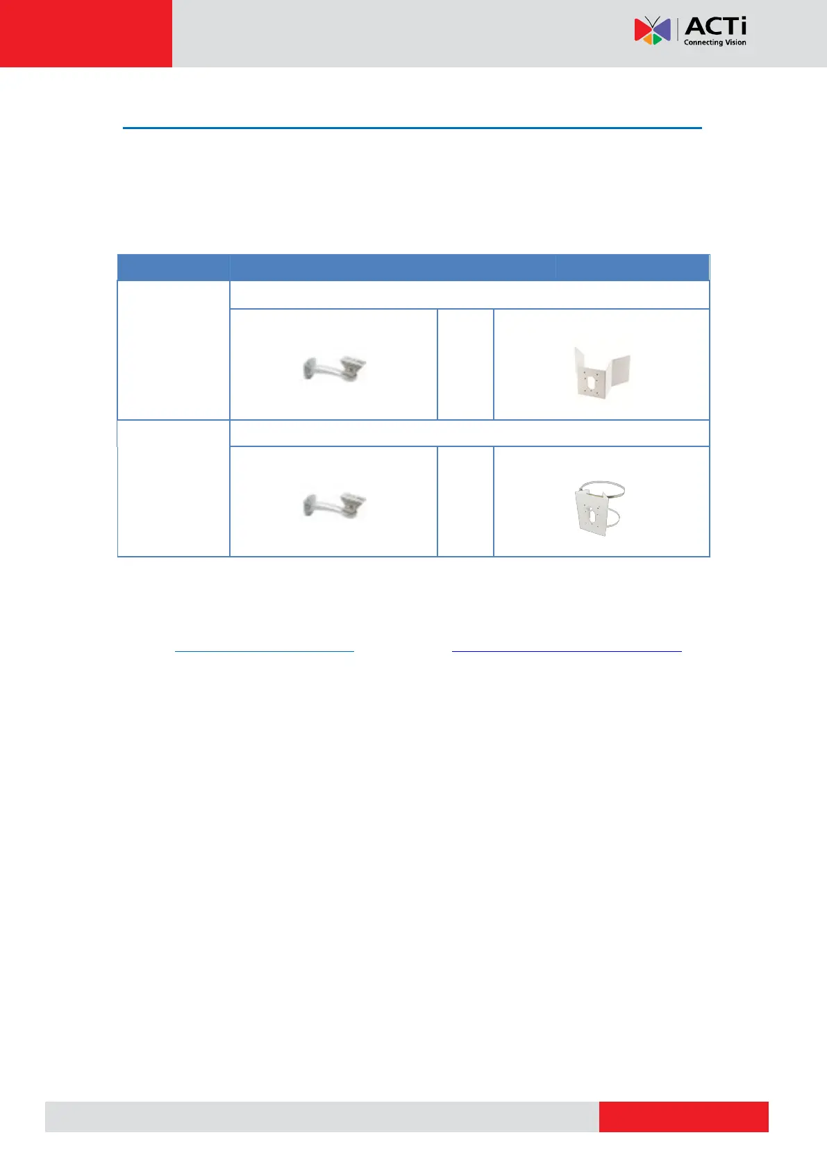 Mounting Accessory Selector in our website (http://www.acti.com/mountingselector).