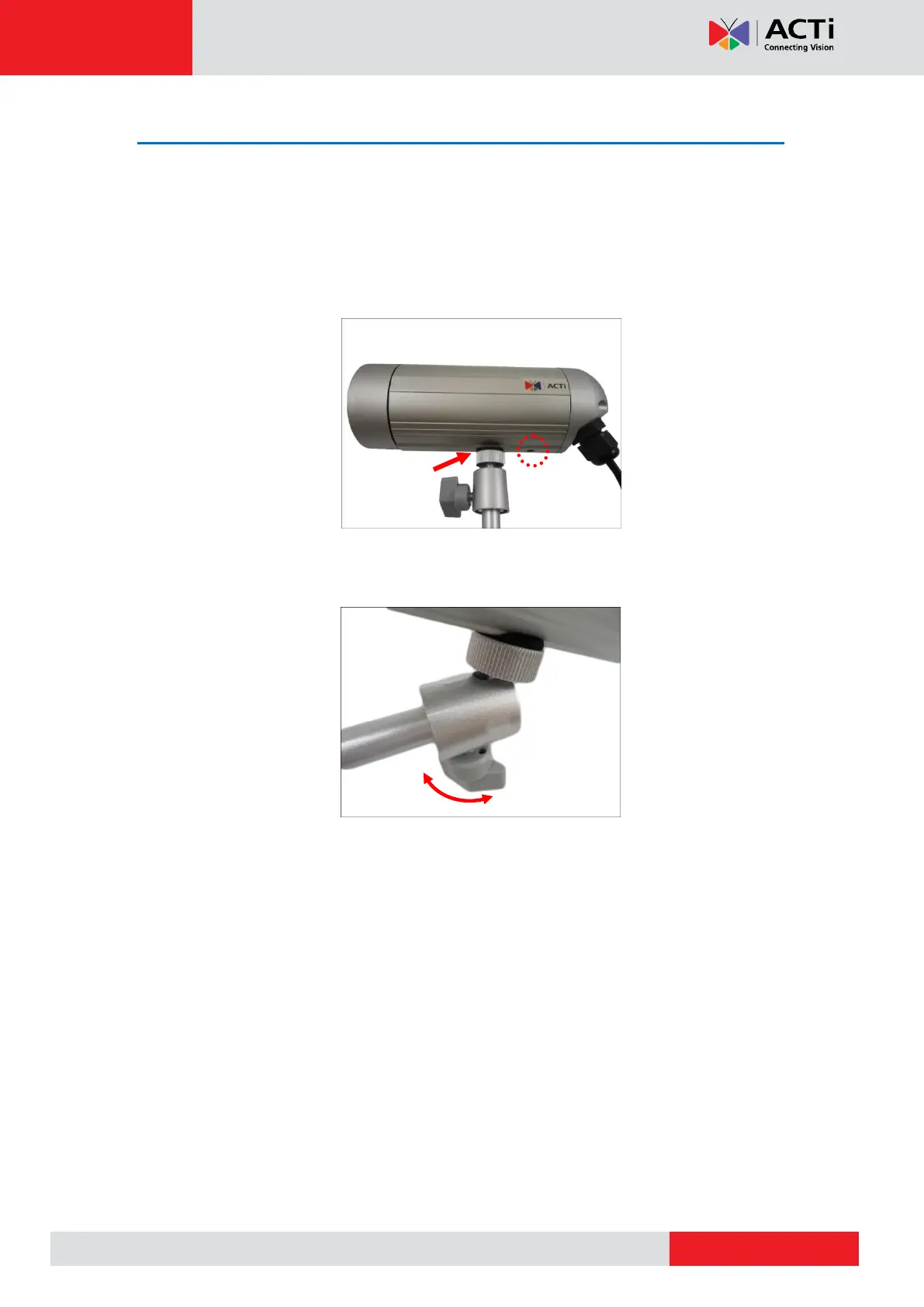 2. Adjust the camera viewing angle and tighten the knob to fix the camera position.