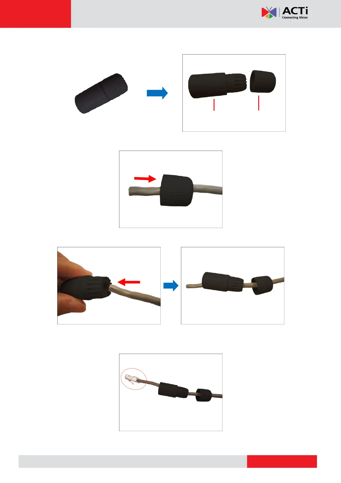 3. Insert the clamping nut into the Ethernet cable (without connector).