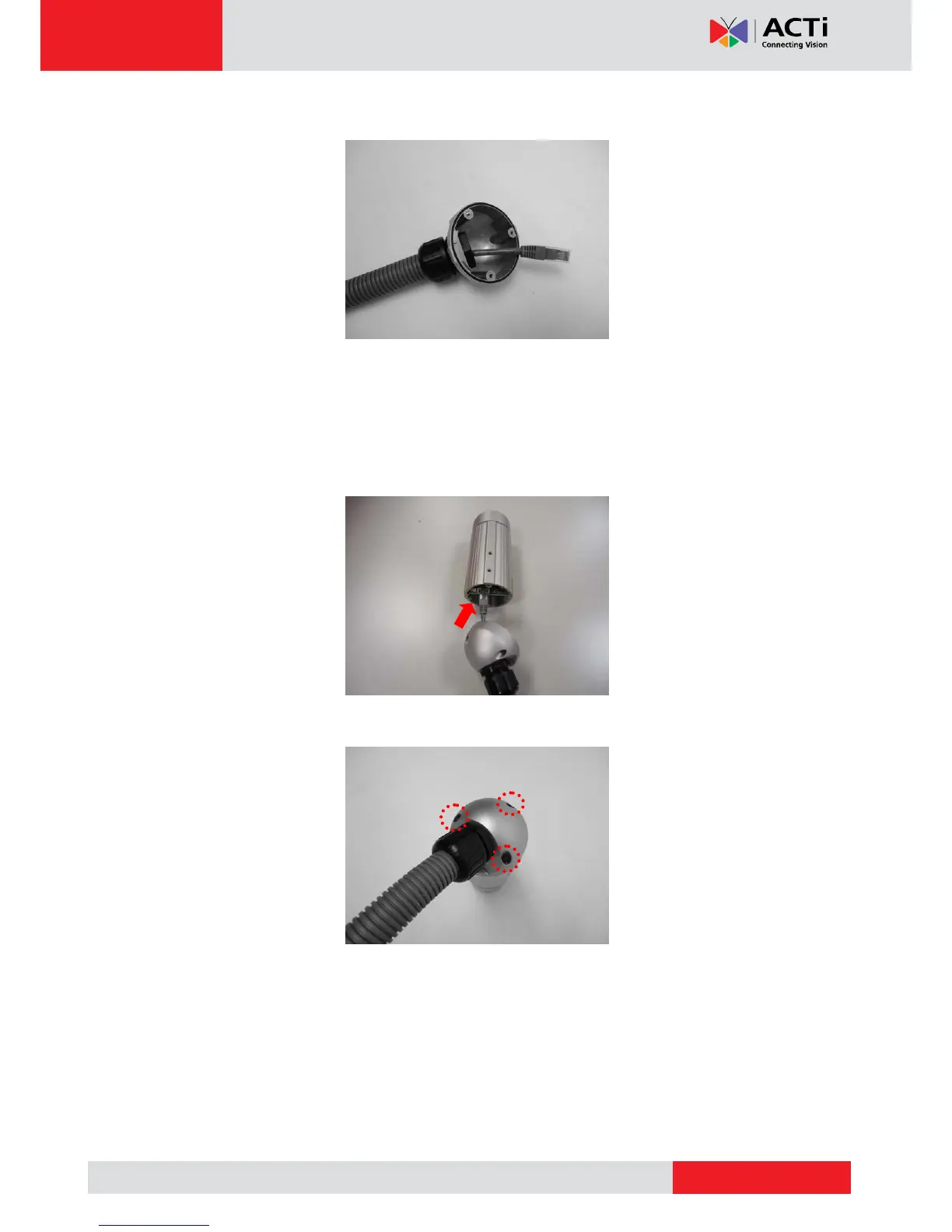 1. Connect the Ethernet cable to the Ethernet port inside the camera.