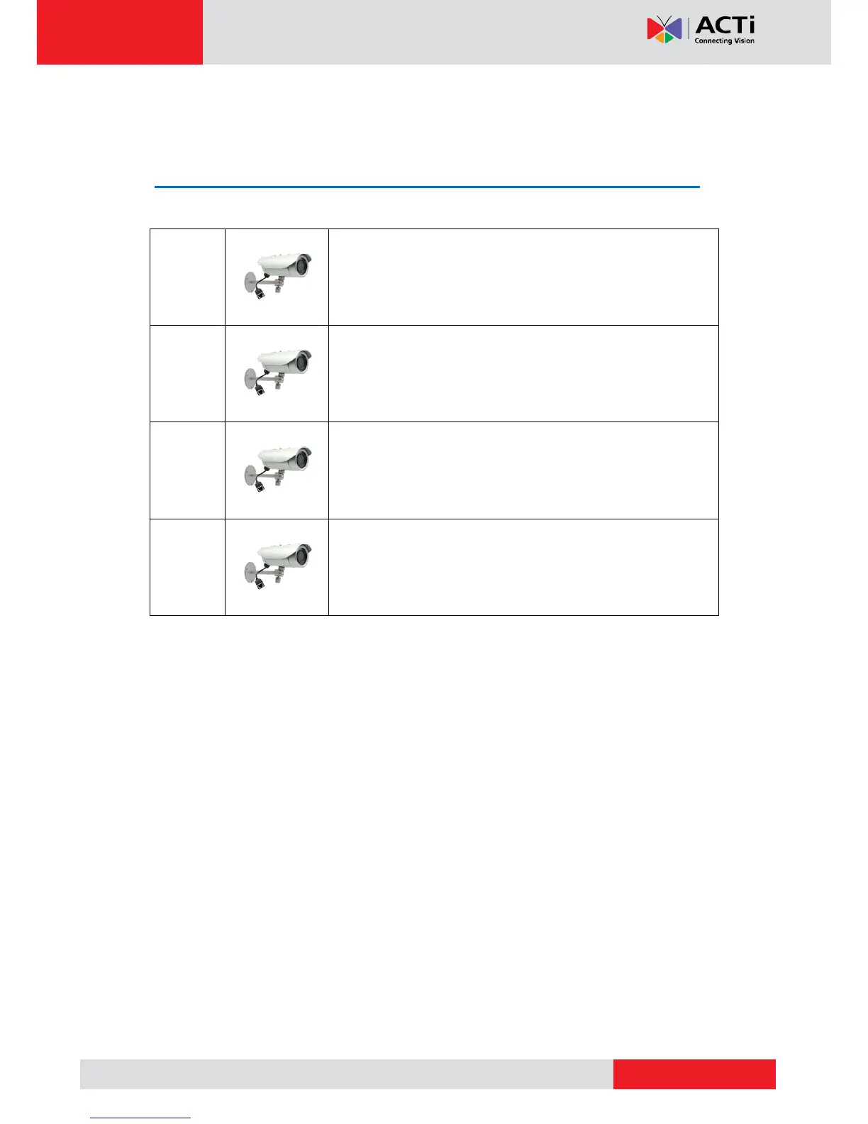 ACTi E33 - Introduction; List of Models