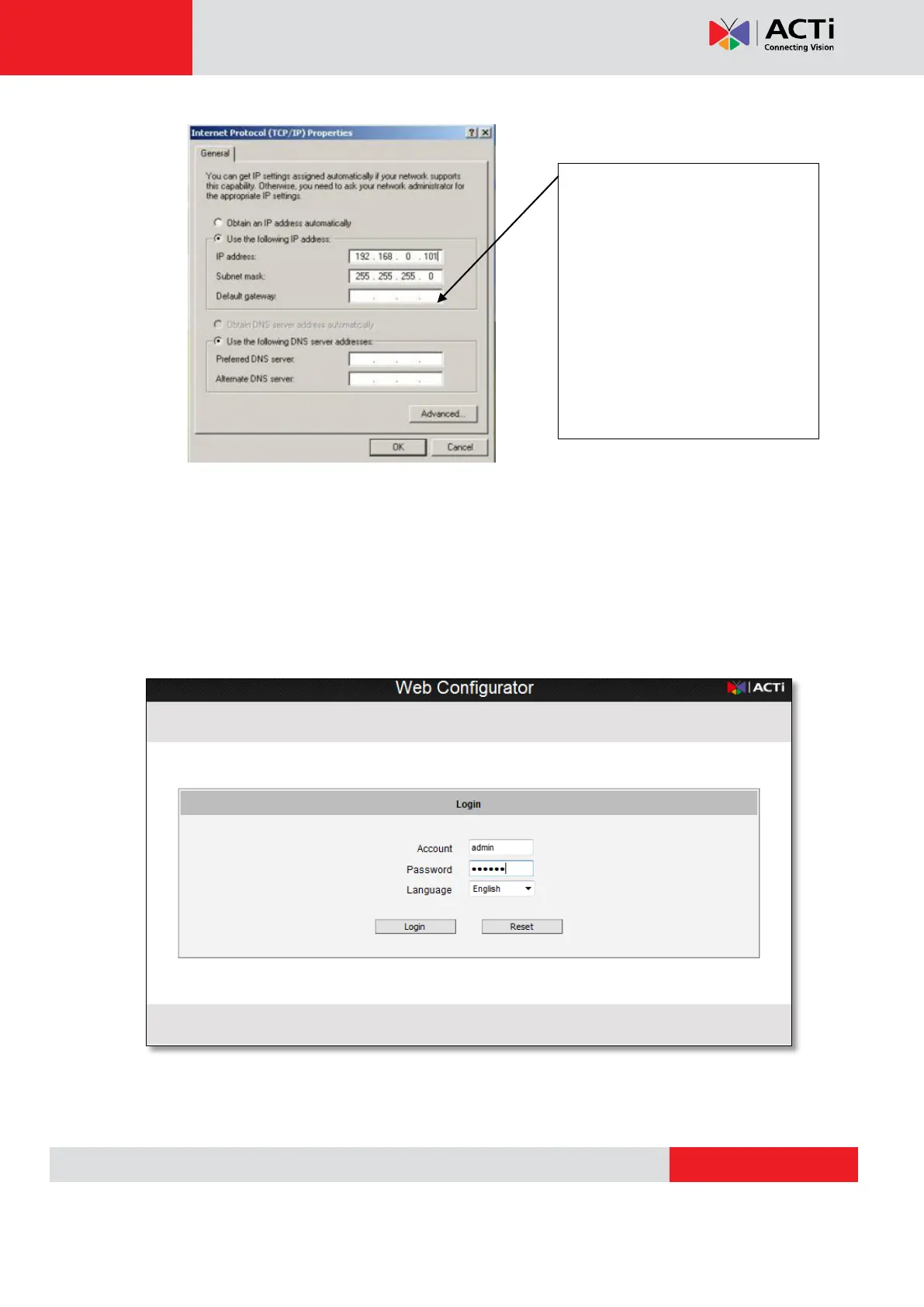 4. Open Internet Explorer (Version 6.0 or above) , and type in the Default IP: