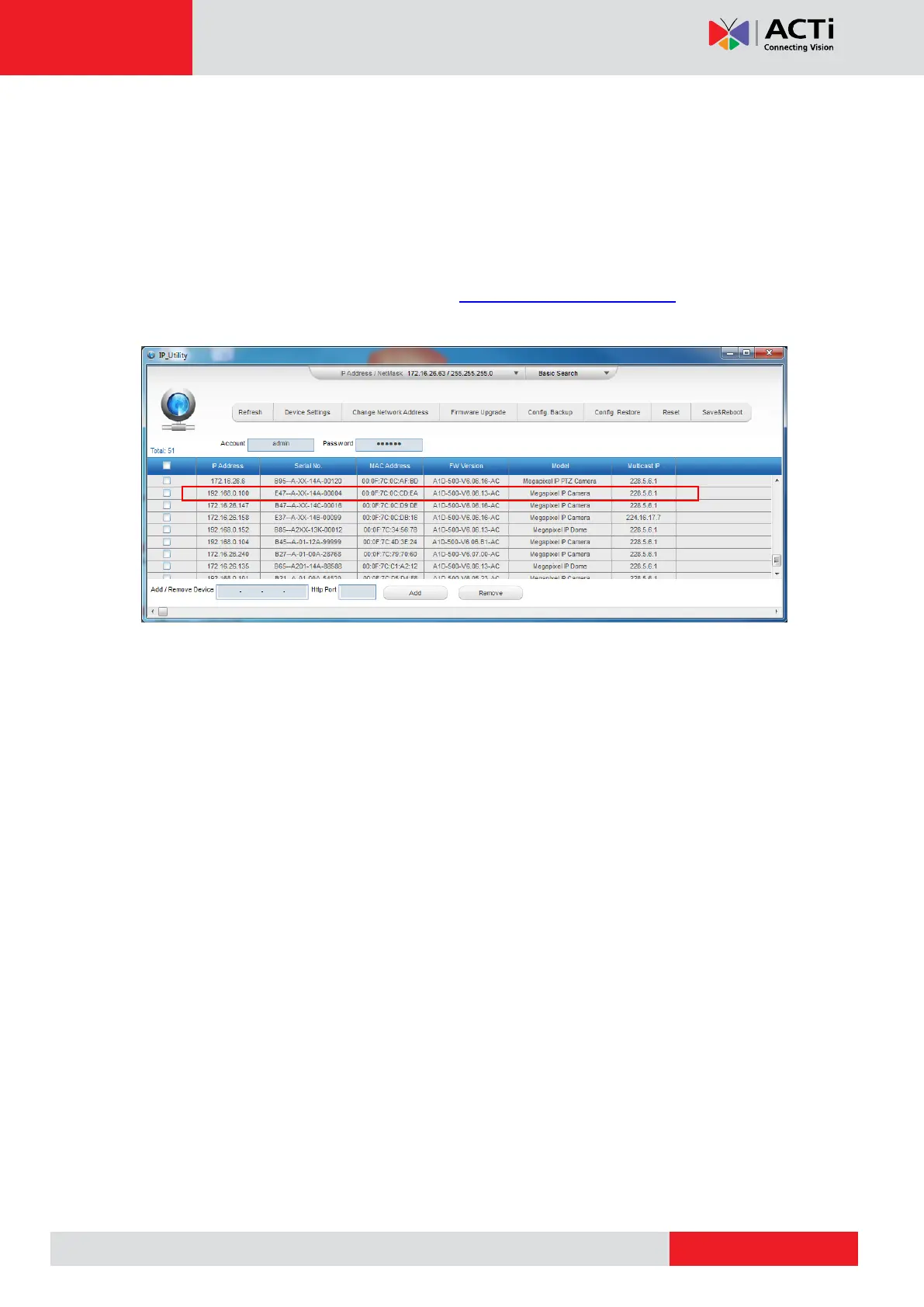 The IP Utility can be downloaded for free from http://www.acti.com/IP_Utility