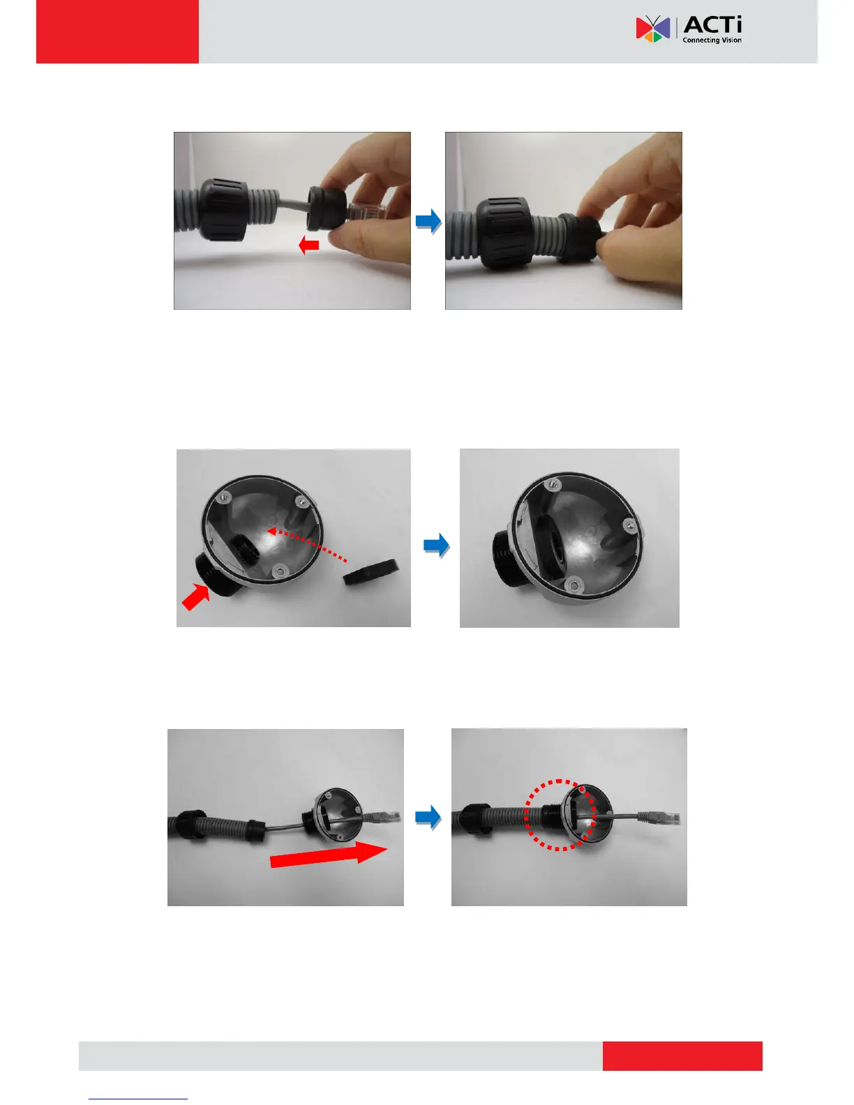 2. Insert the Ethernet cable through the back cover and then align the sealing insert
