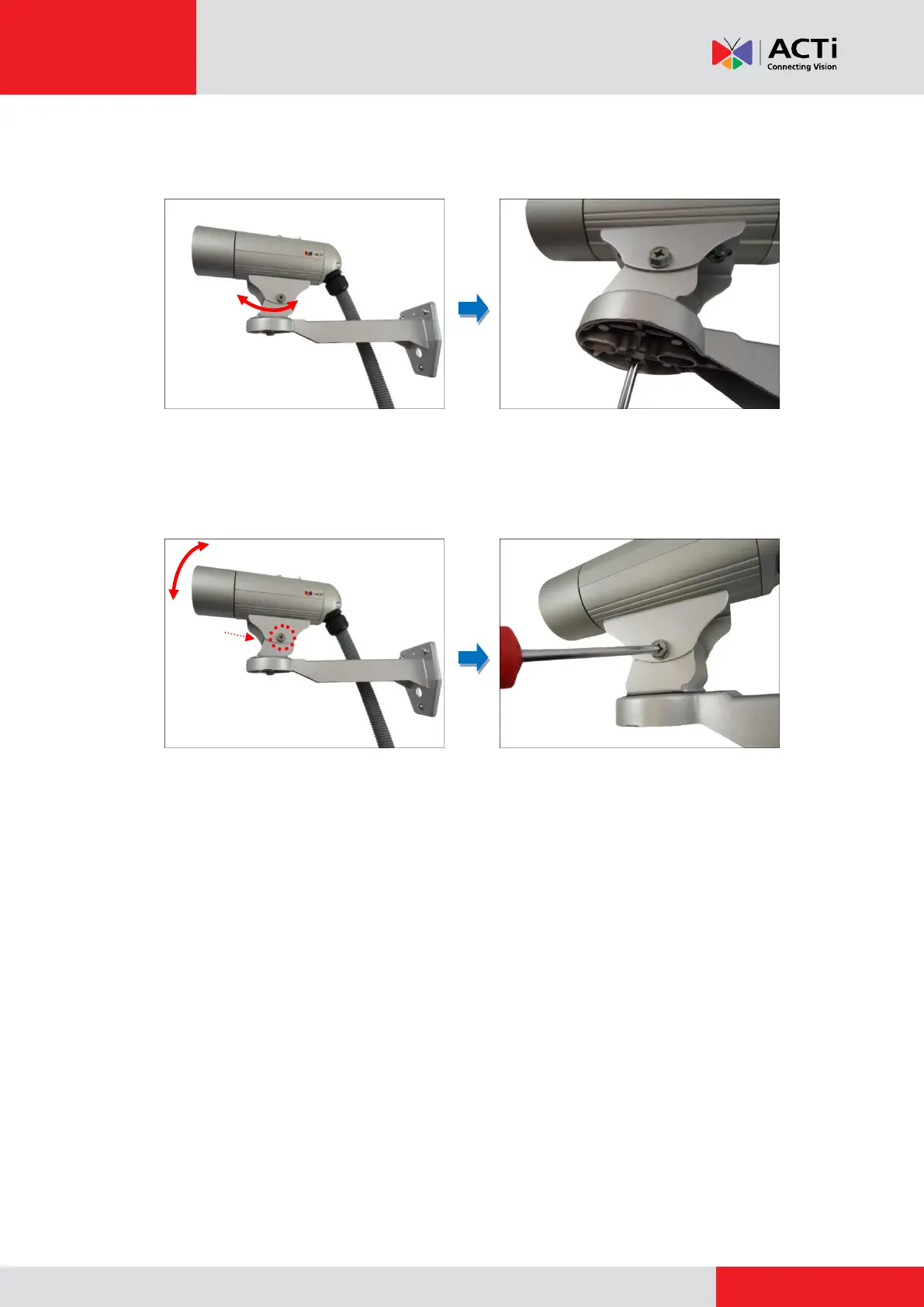 4. As needed, loosen the two (2) side screws of the holder and then move the camera up or