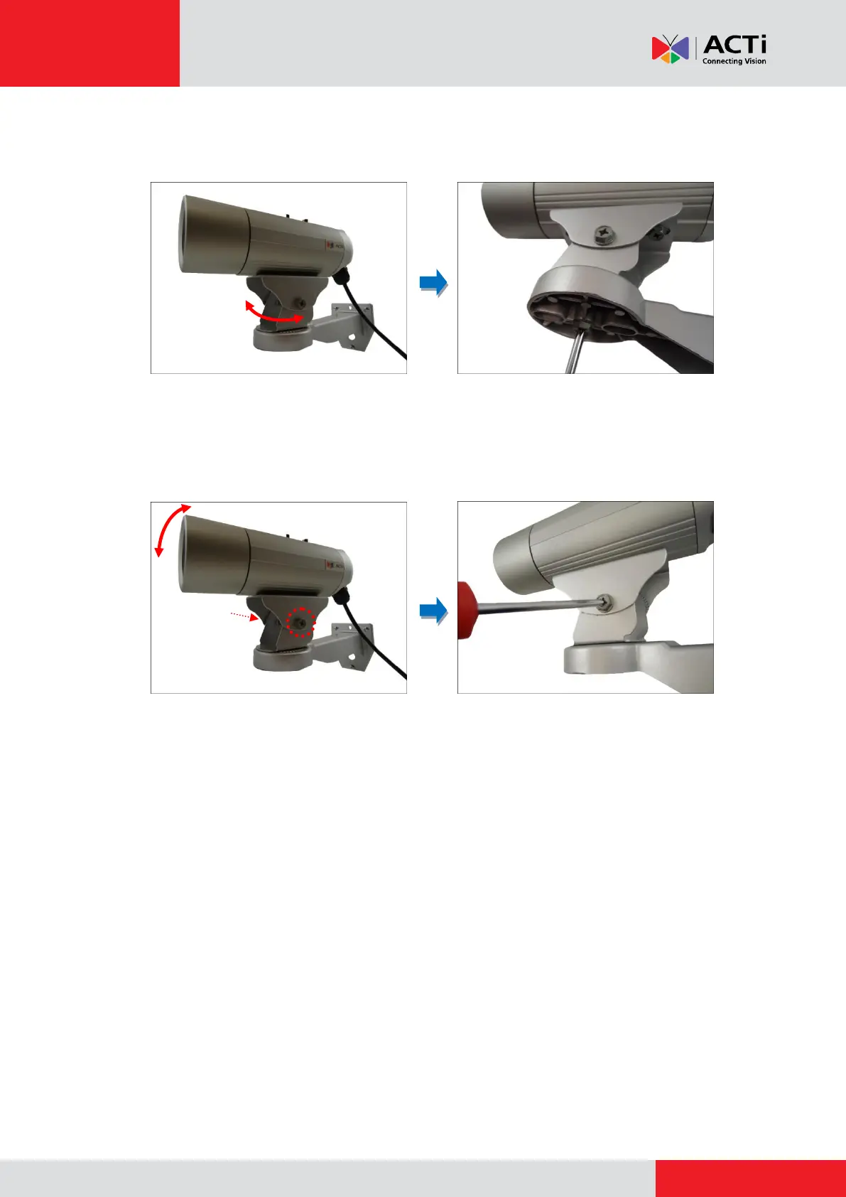 down to adjust the camera viewing angle. Then, tighten the two (2) side screws to fix the