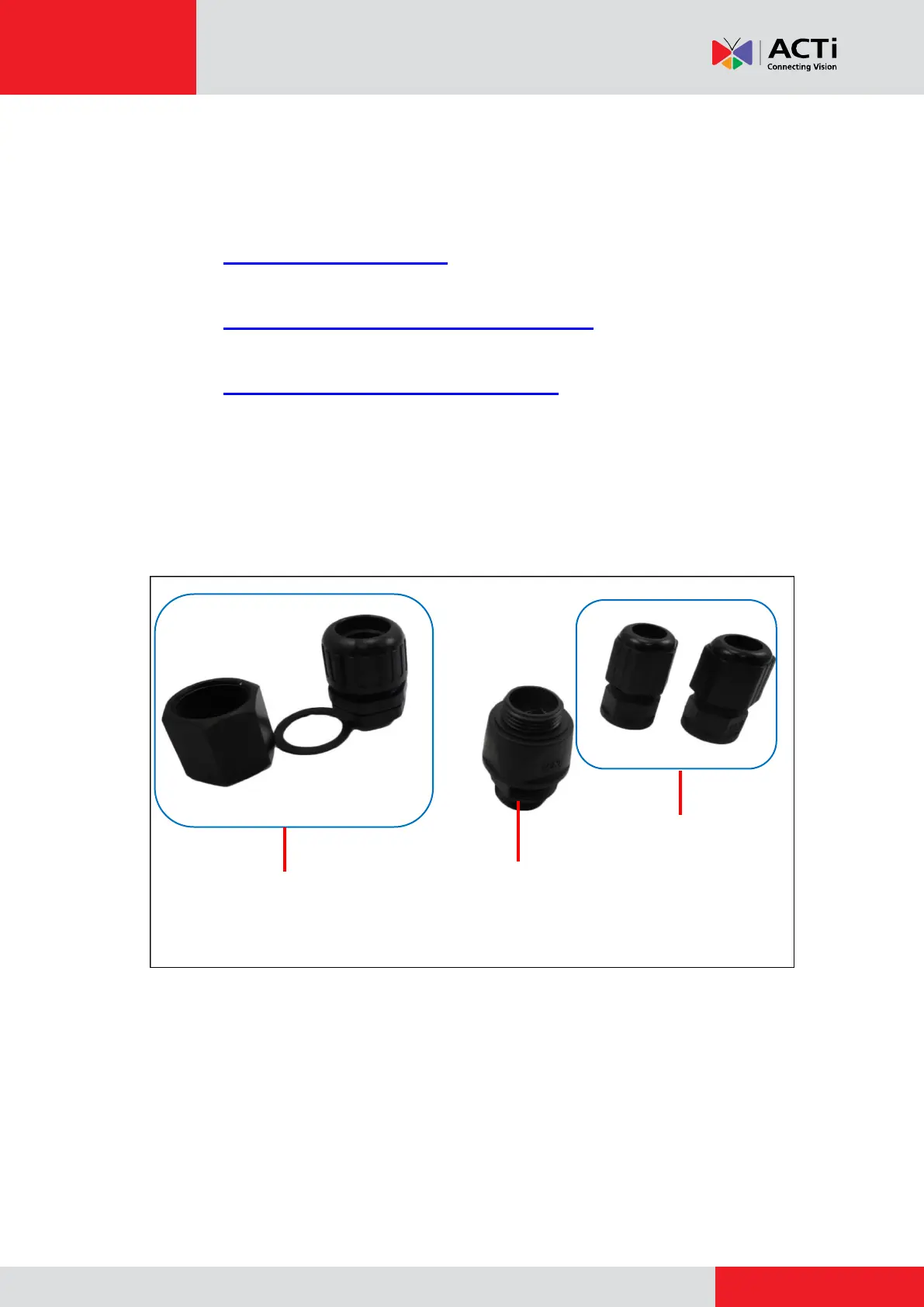 Before installation, check the camera package. Note that the camera comes with waterproof