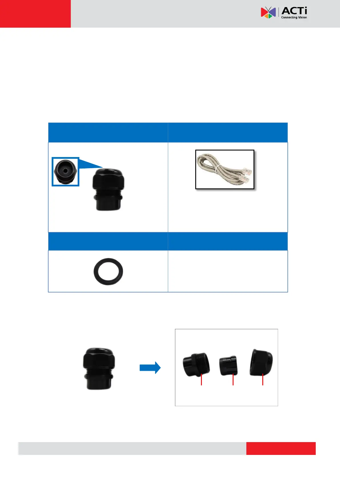 bundled cable gland. An exterior-grade Ethernet cable is required. The camera may or may not