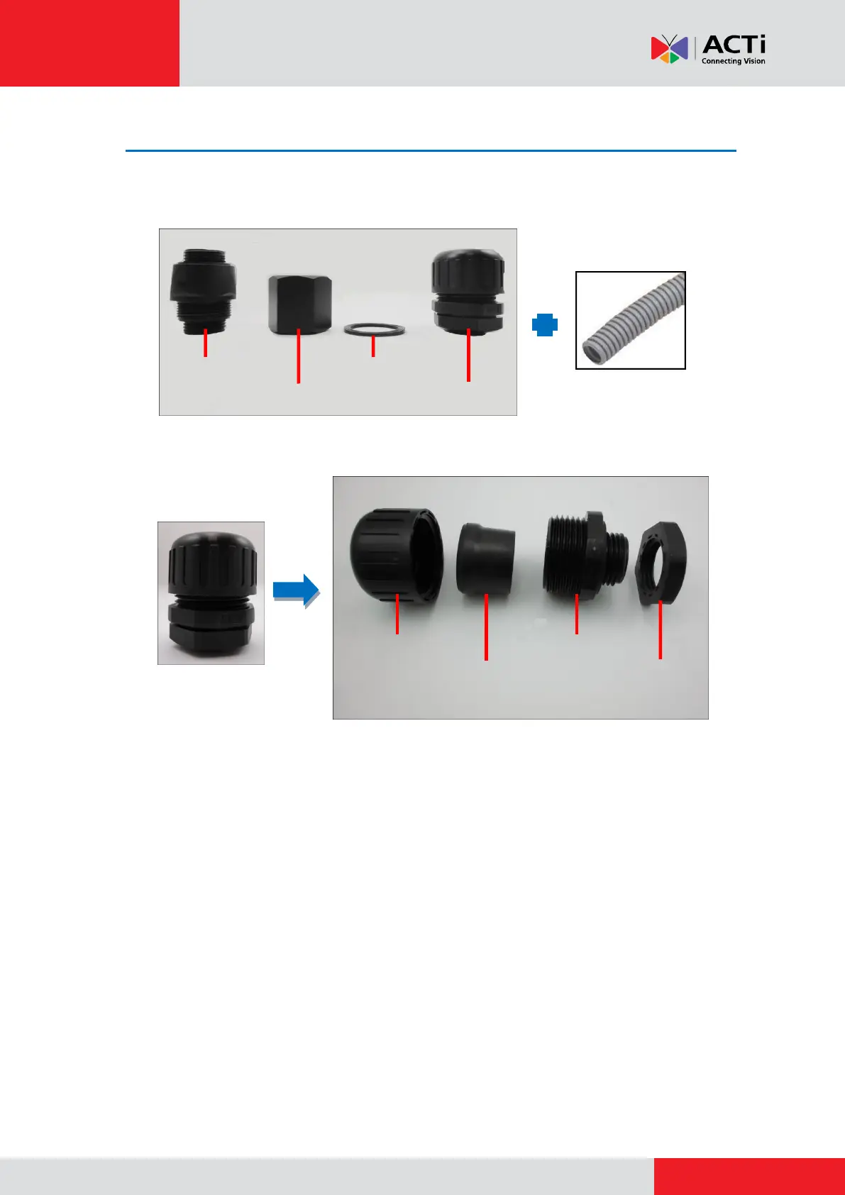1. Prepare the Conduit Gland accessories (included in the waterproof cable kit) and flexible