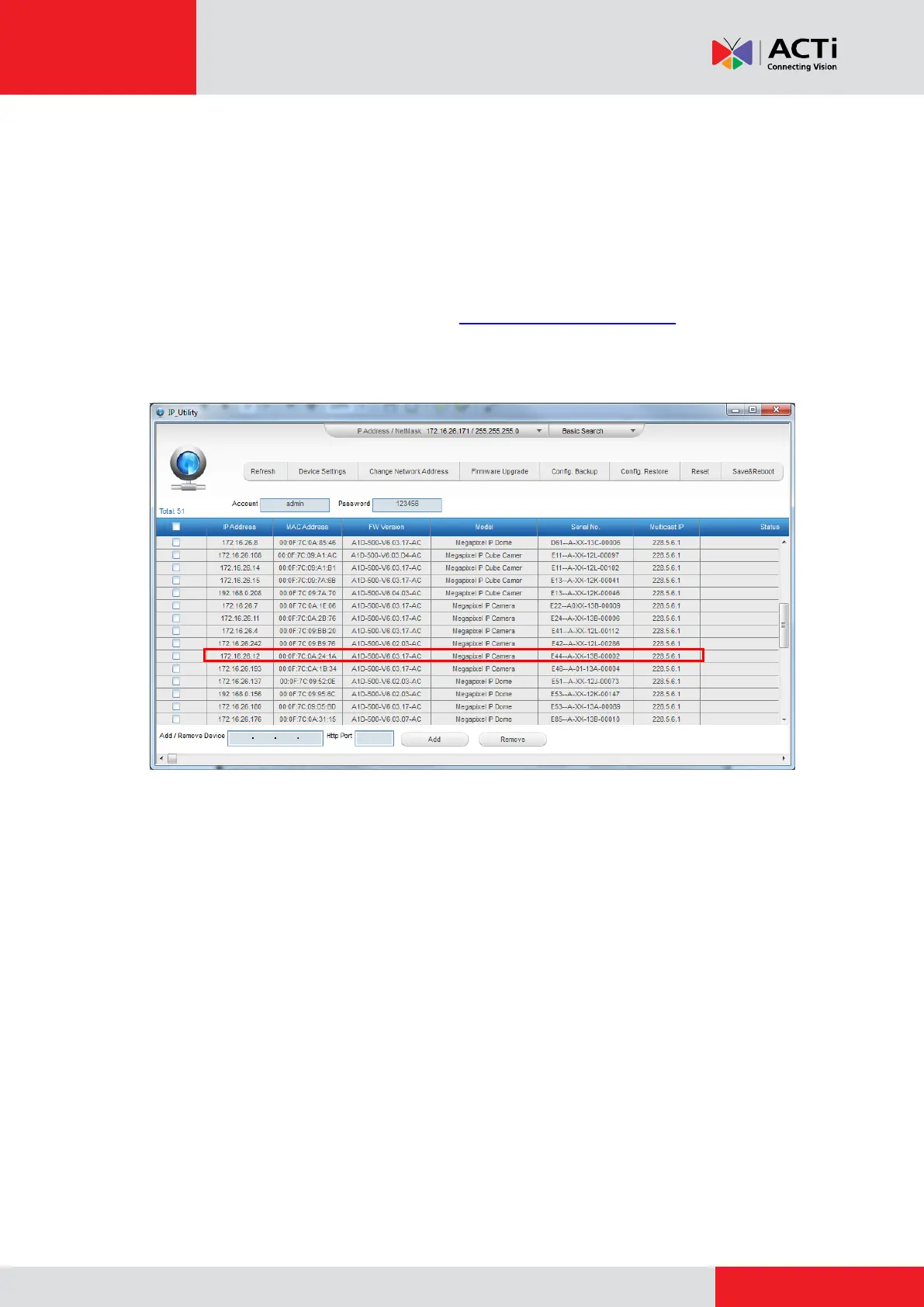 The IP Utility can be downloaded for free from http://www.acti.com/IP_Utility
