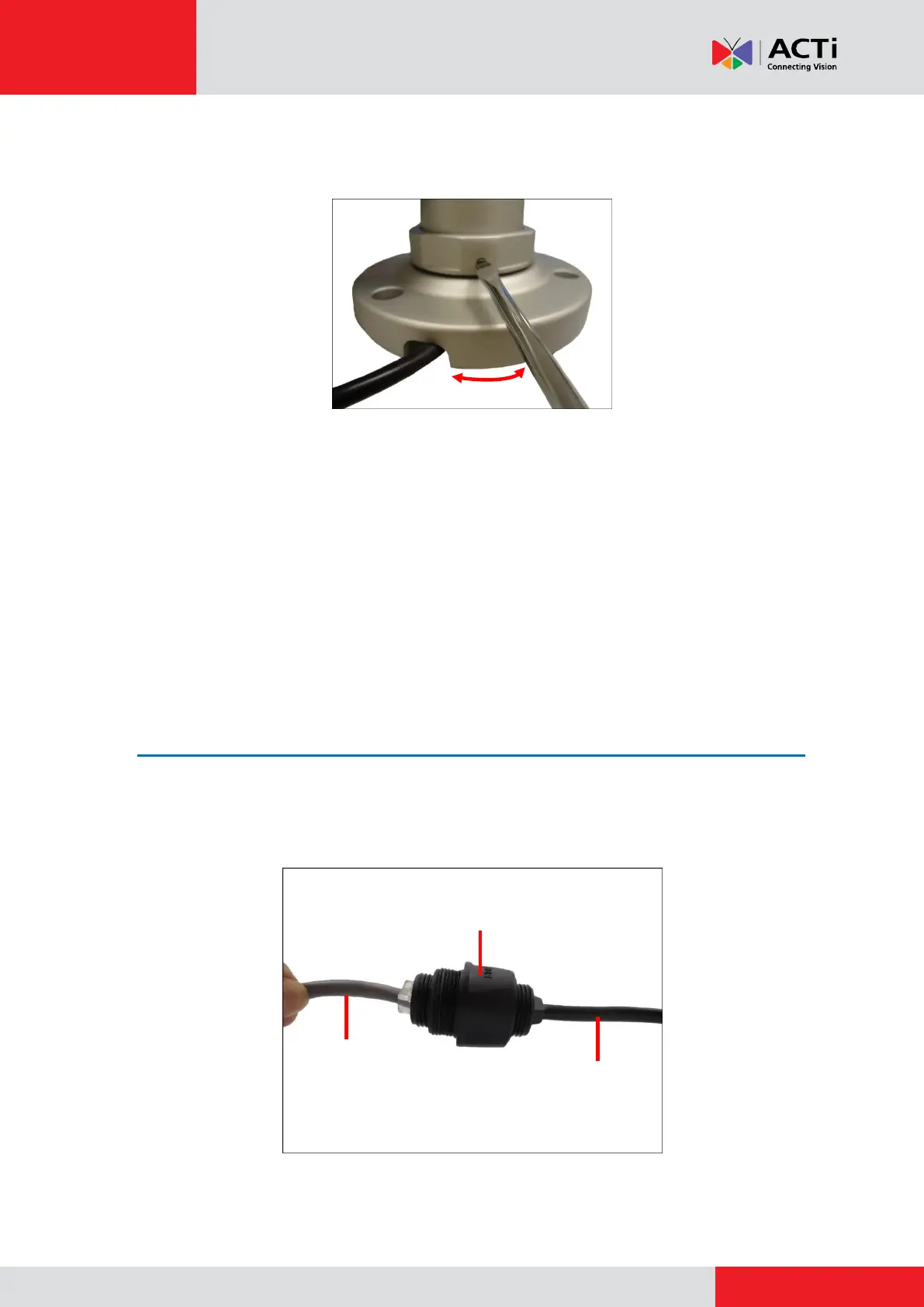 1. Connect the Ethernet connector of the camera and the network to each side of the bundled