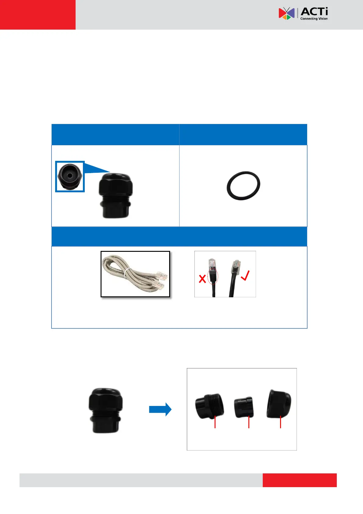 bundled cable gland. An exterior-grade Ethernet cable is required. The camera may or may not
