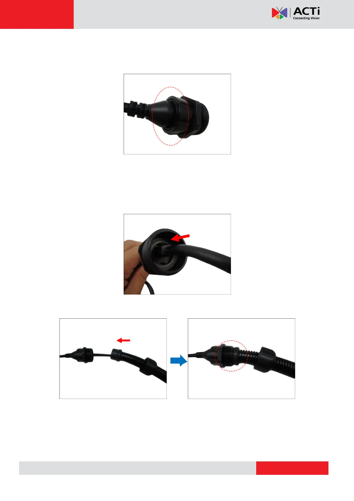 6. Attach the gland body to the Ethernet port of the camera.