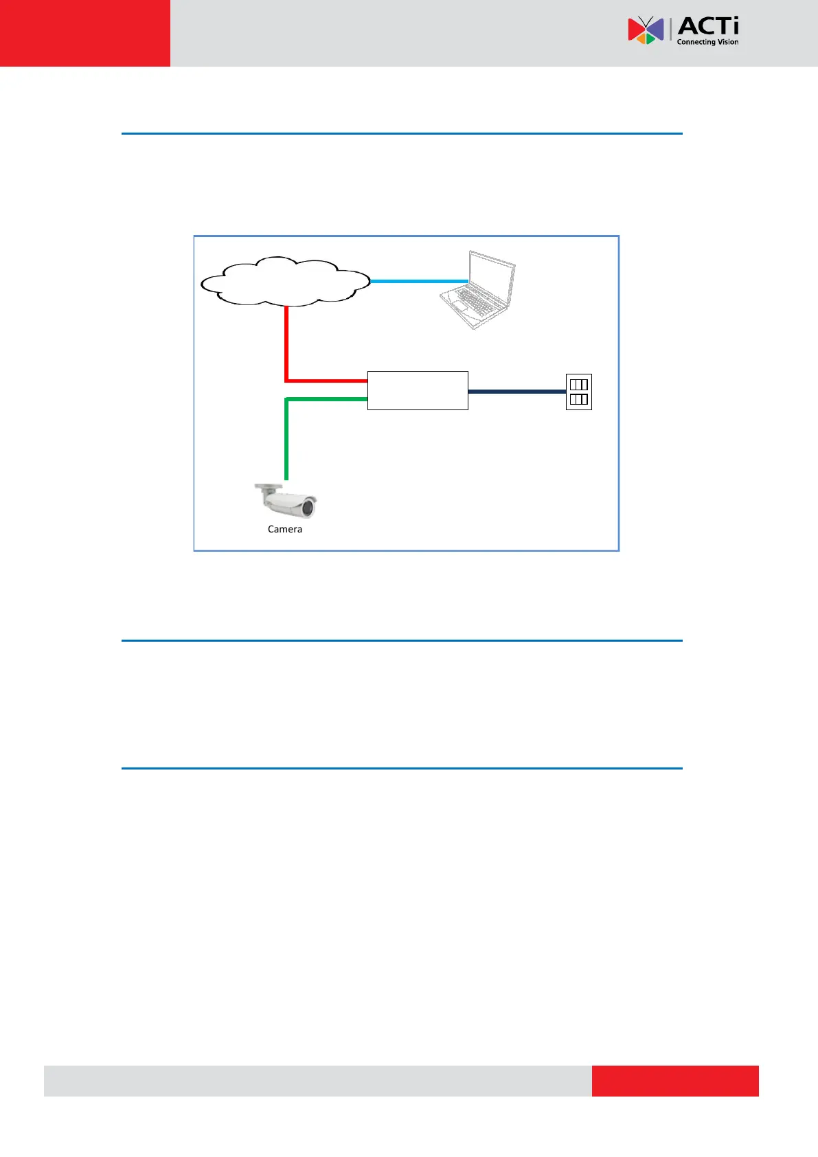 Connect the other end of the network cable to a switch or injector. Then, connect the switch or