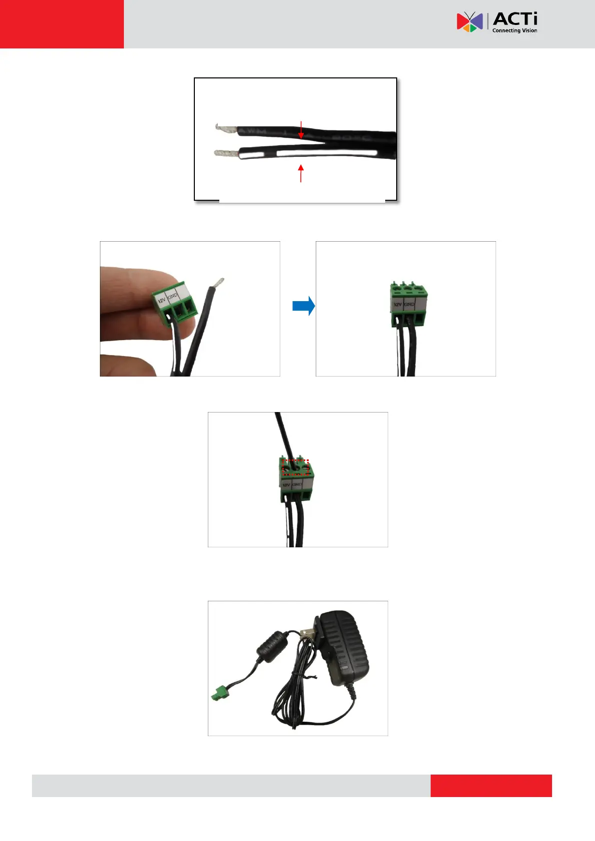 4. Tighten the screws of the 12V pin and the GND pins to secure the wire connection.