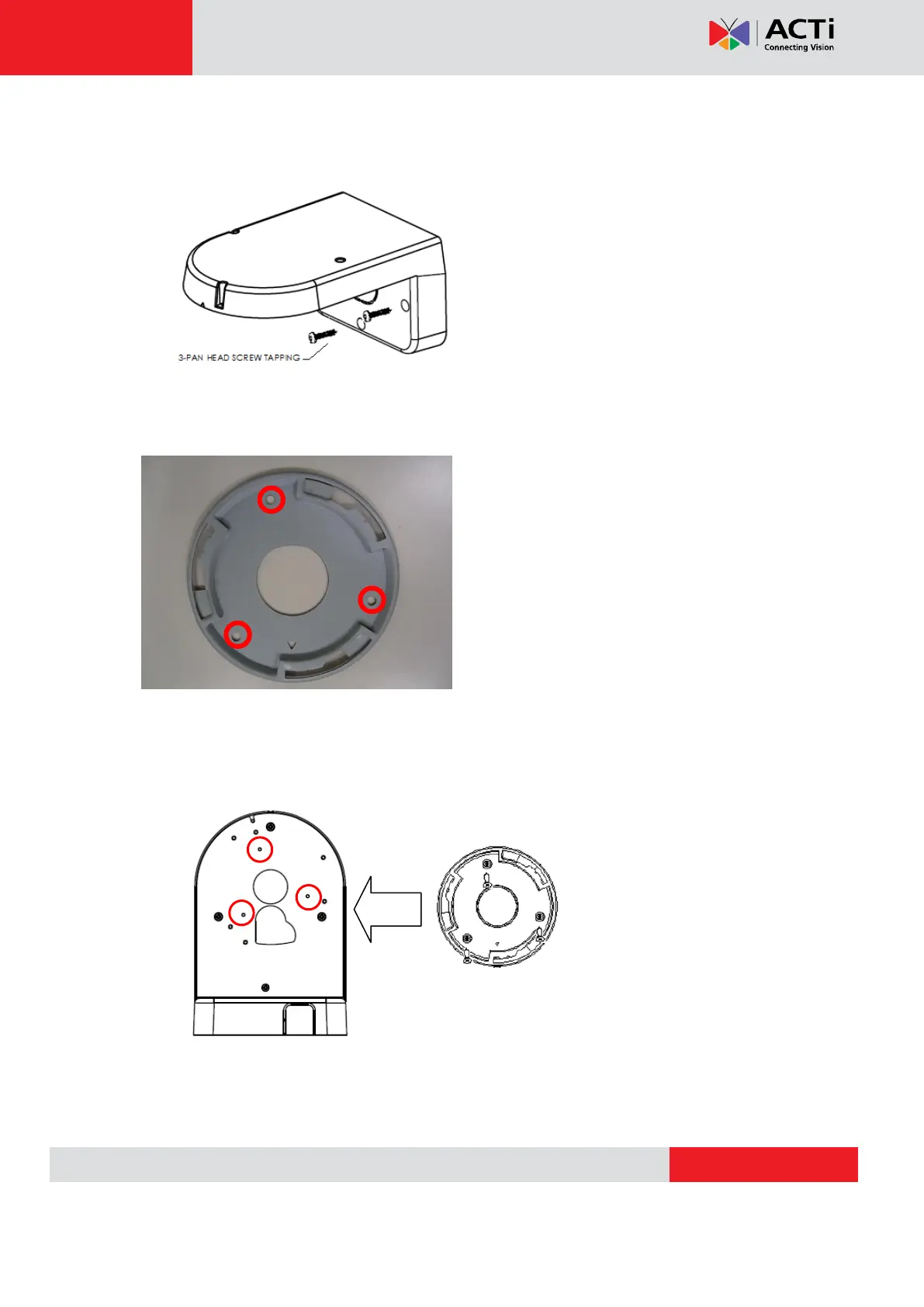 Tighten wall mount bracket to the wall by 3 PAN Head Tapping screws