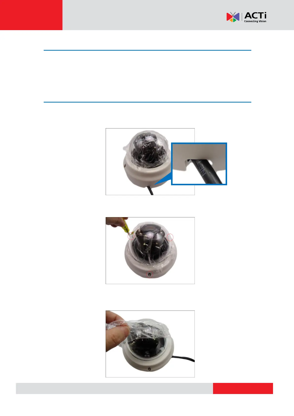 2. Tighten the three (3) screws to attach the dome cover to the camera body.