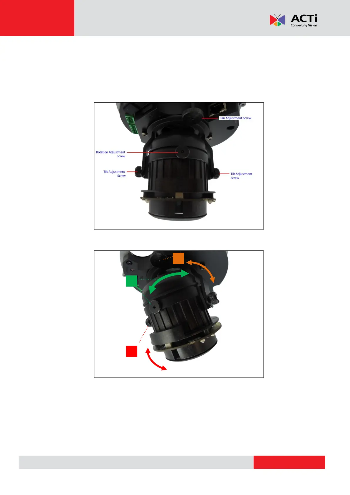 1. Loosen the tilt adjustment screws, adjust the tilt, and then tighten back the screws to fix