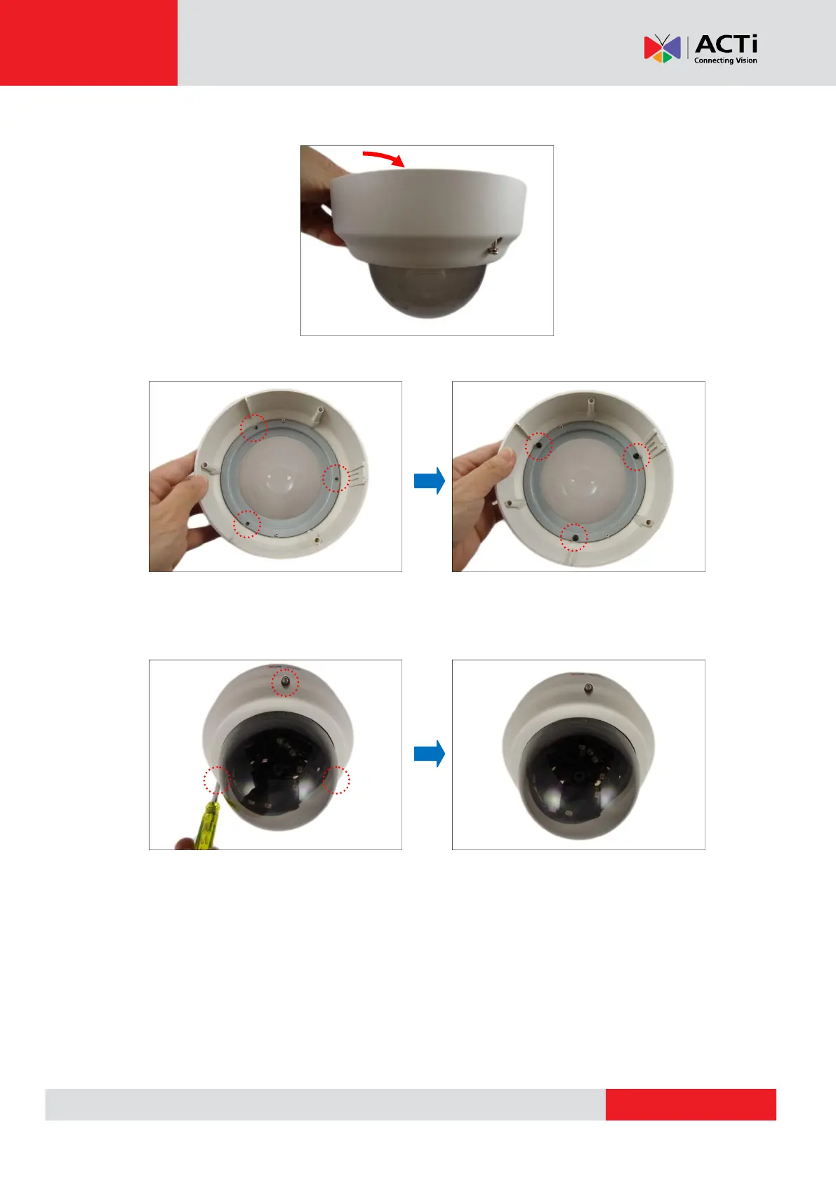 6. Attach the dome cover to the camera by tightening the three (3) screws. Final installation