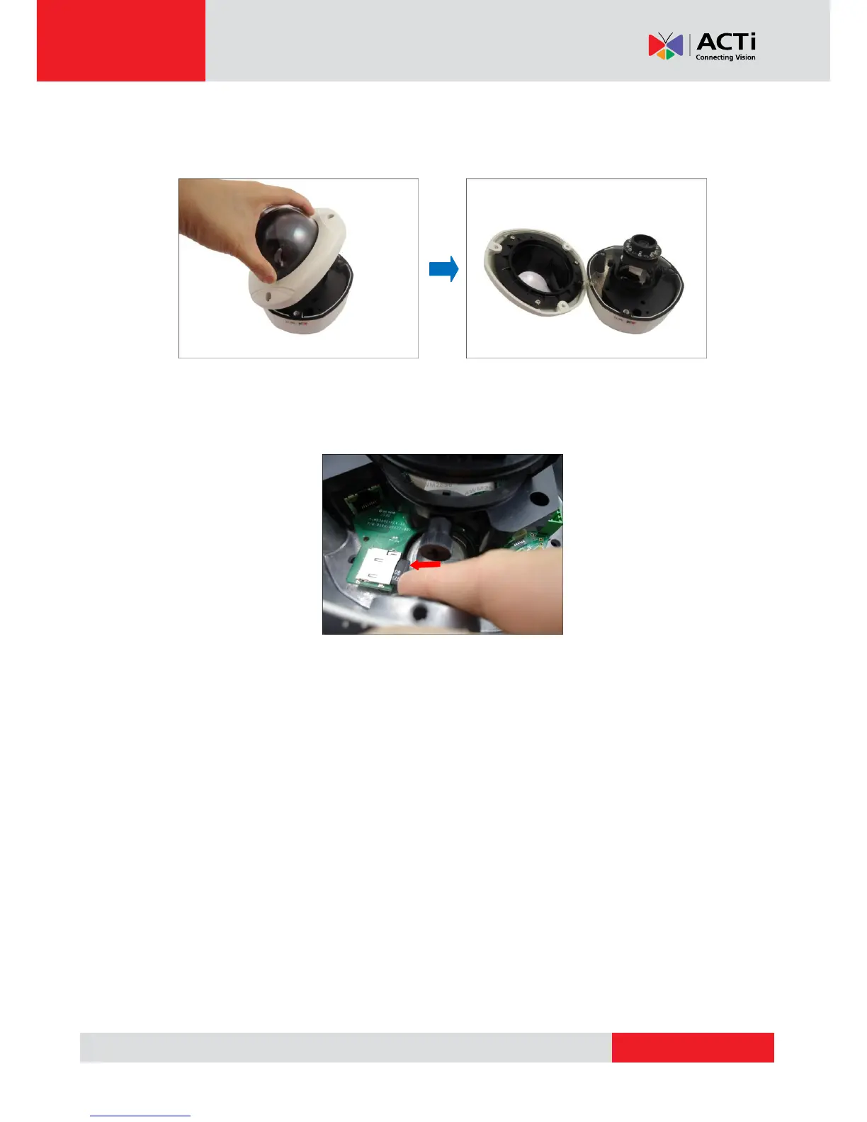 3. Carefully lift to open the dome cover and place it on the side of the camera.