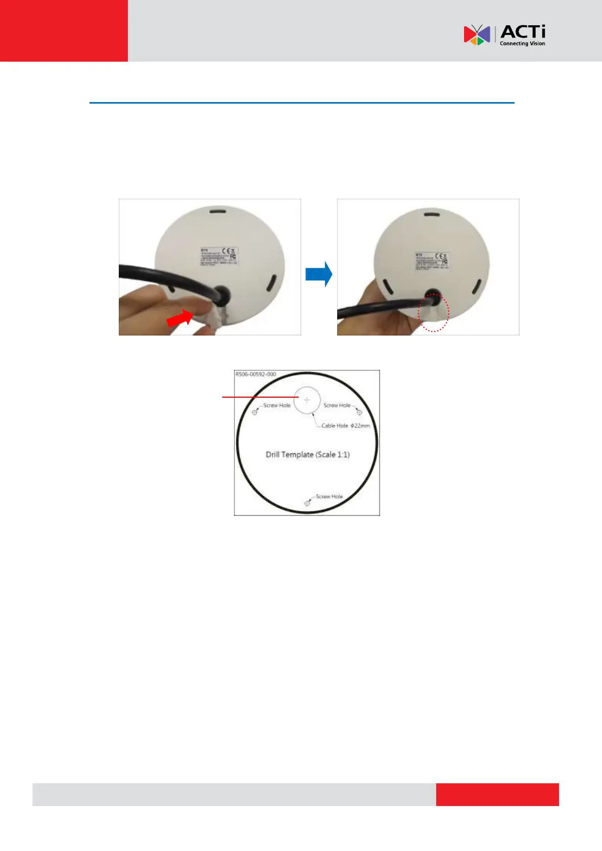 4. Push the cable through the hole on the surface.
