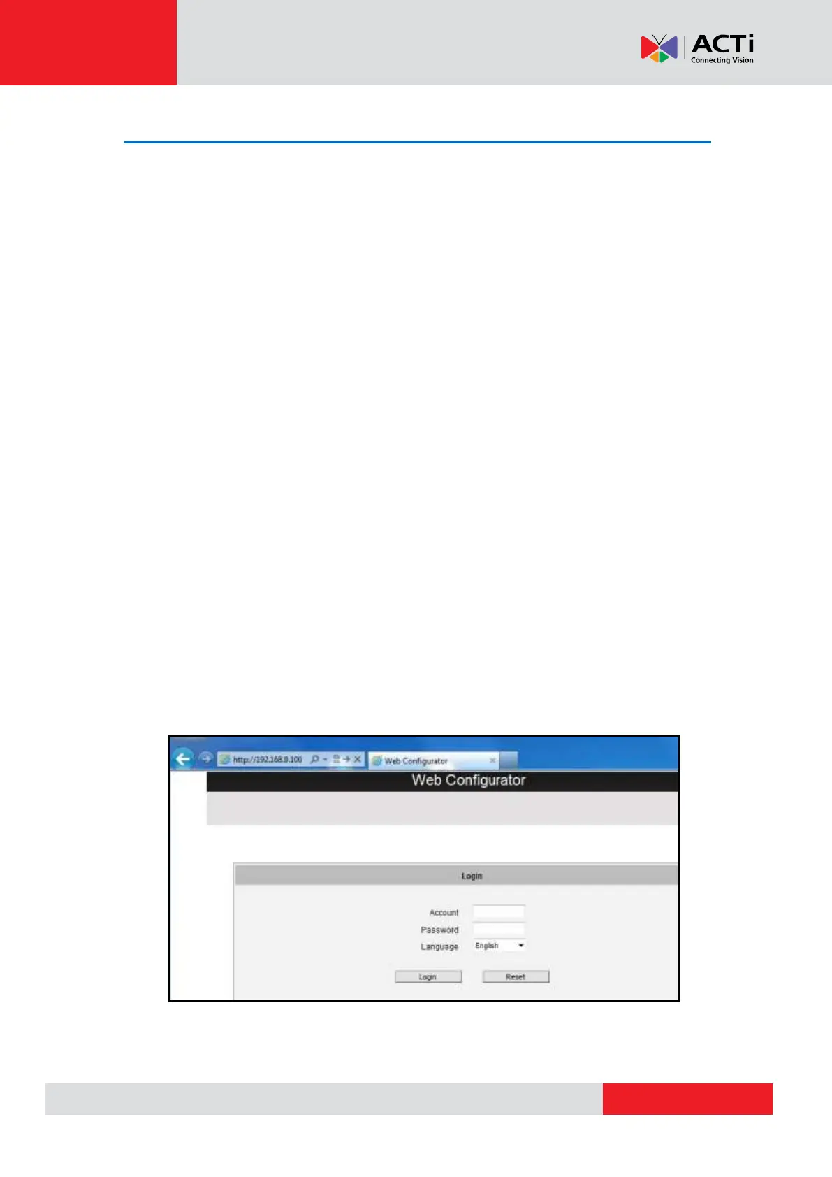 same network segment, it is possible to use the Web browser of the PC to access the camera.