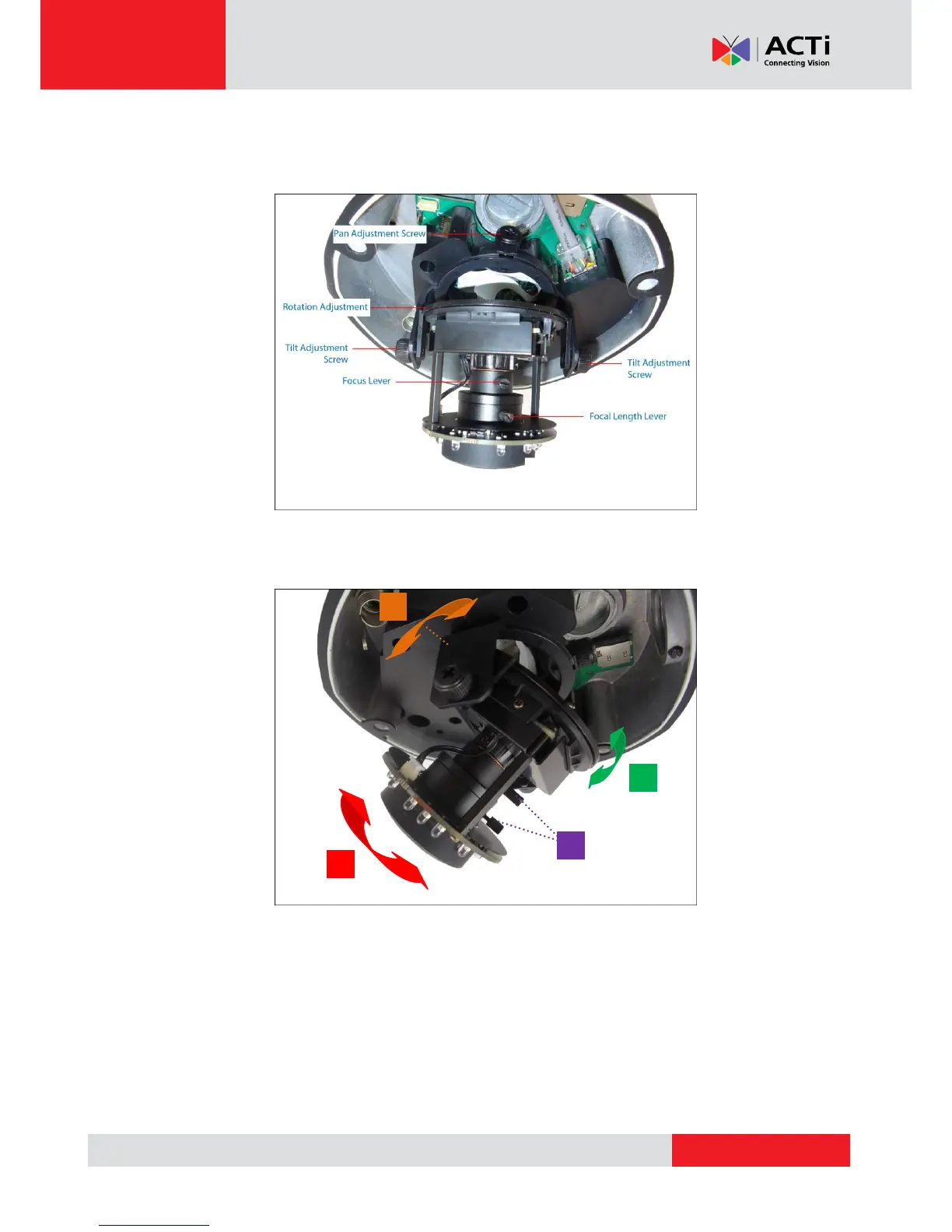 3. Loosen the pan adjustment screw, move the pan direction, and then tighten back the