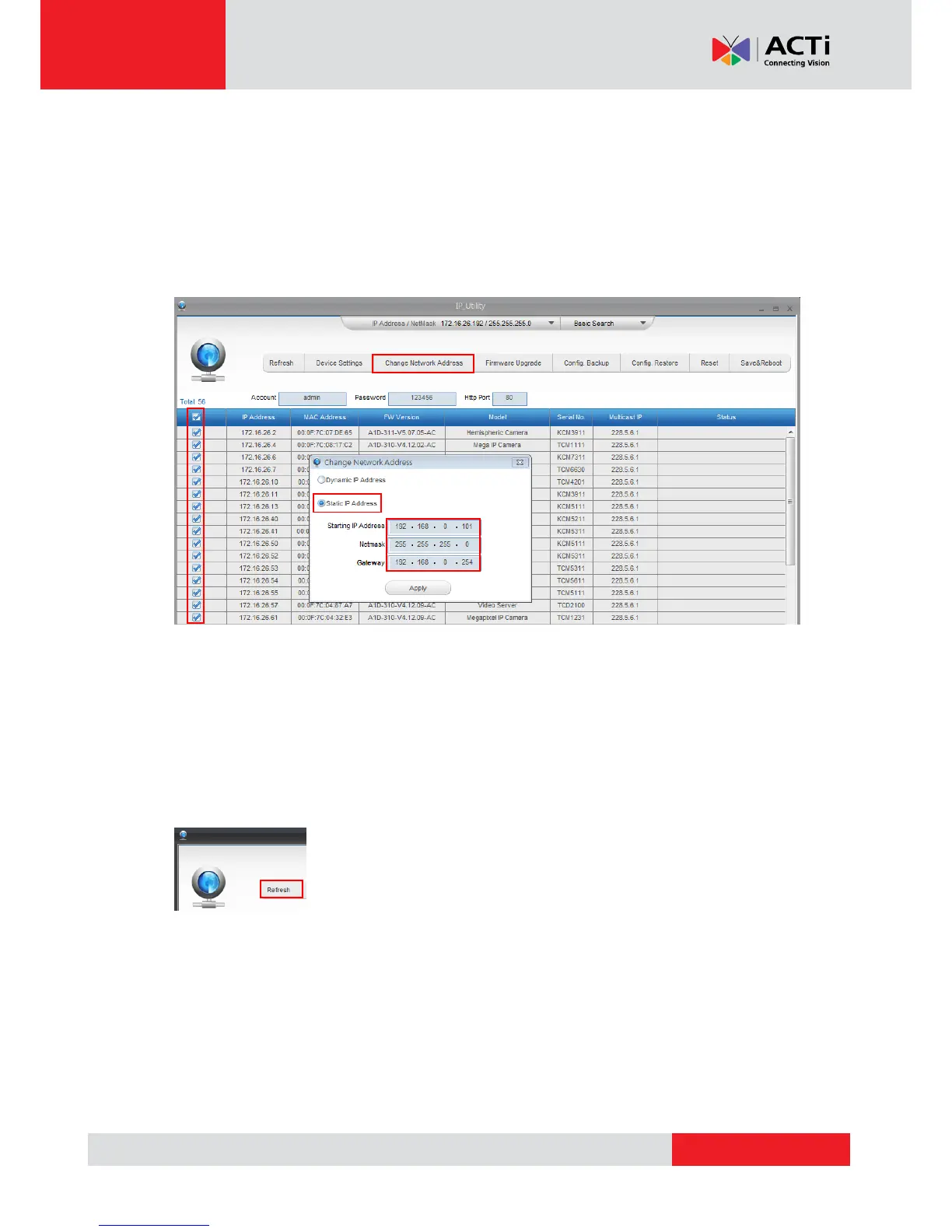 Later, by pressing the “Refresh” button of the IP Utility, you will be able to see the list of cameras