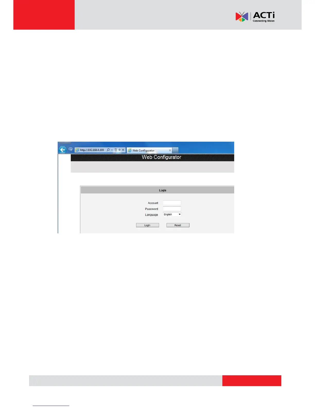 Before logging in, you need to know the factory default Account and Password of the camera.