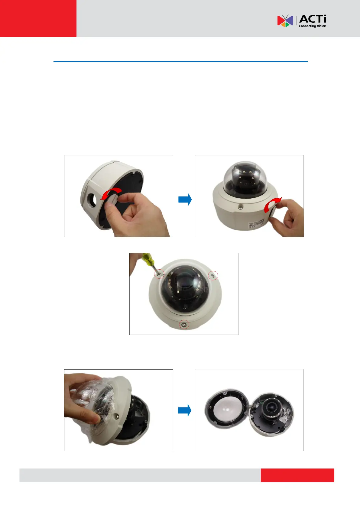 3. Carefully lift to open the dome cover and place it on the side of the camera.