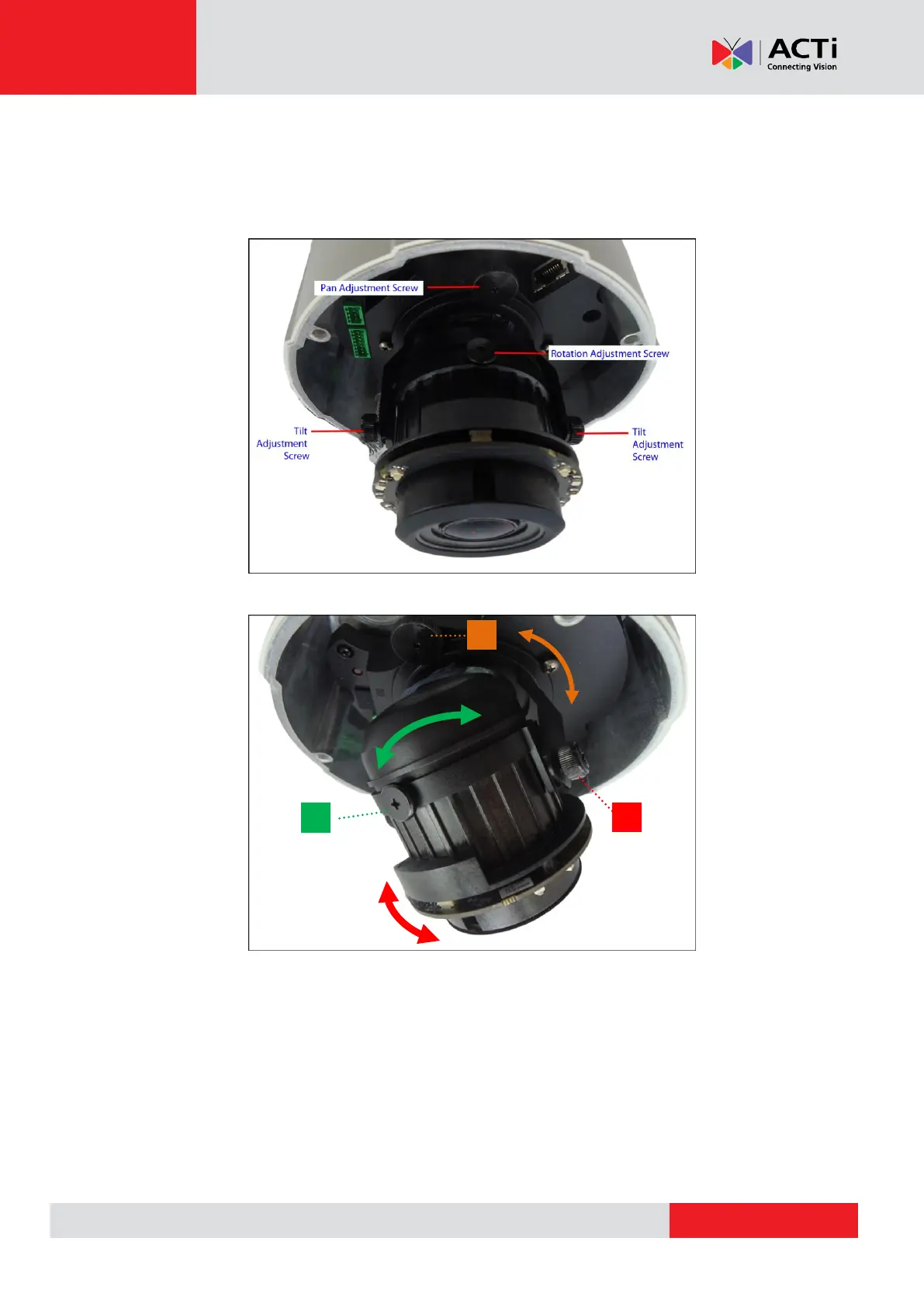 3. Loosen the pan adjustment screw, move the pan direction, and then tighten back the