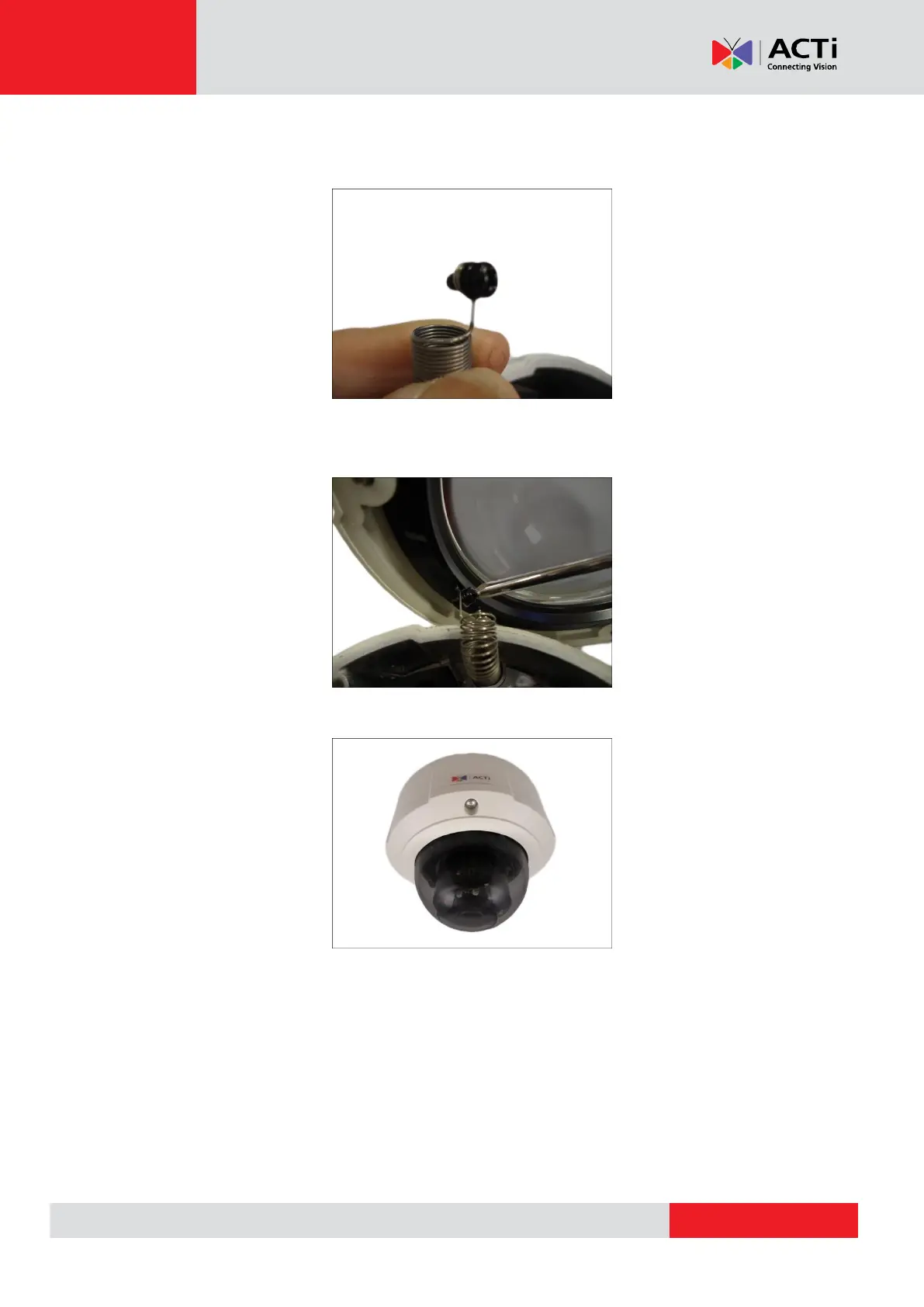 10. Fit the screw into the spring wire that is attached to the camera. Note the screw placement as
