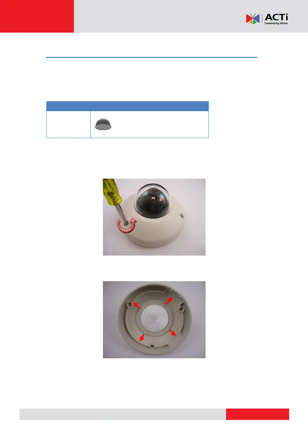 1. Loosen the three (3) screws to remove the dome cover.