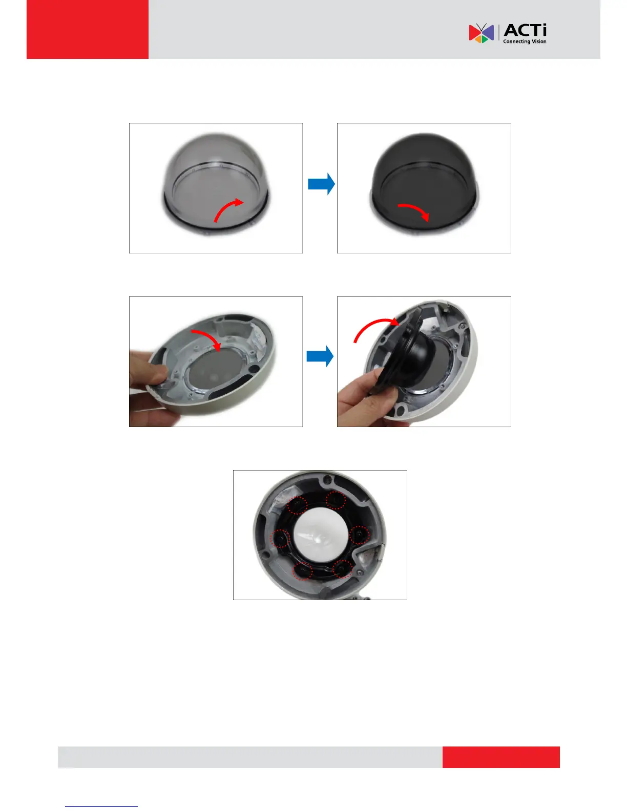4. Remove the black rubber from the transparent dome cover and place the black rubber to the