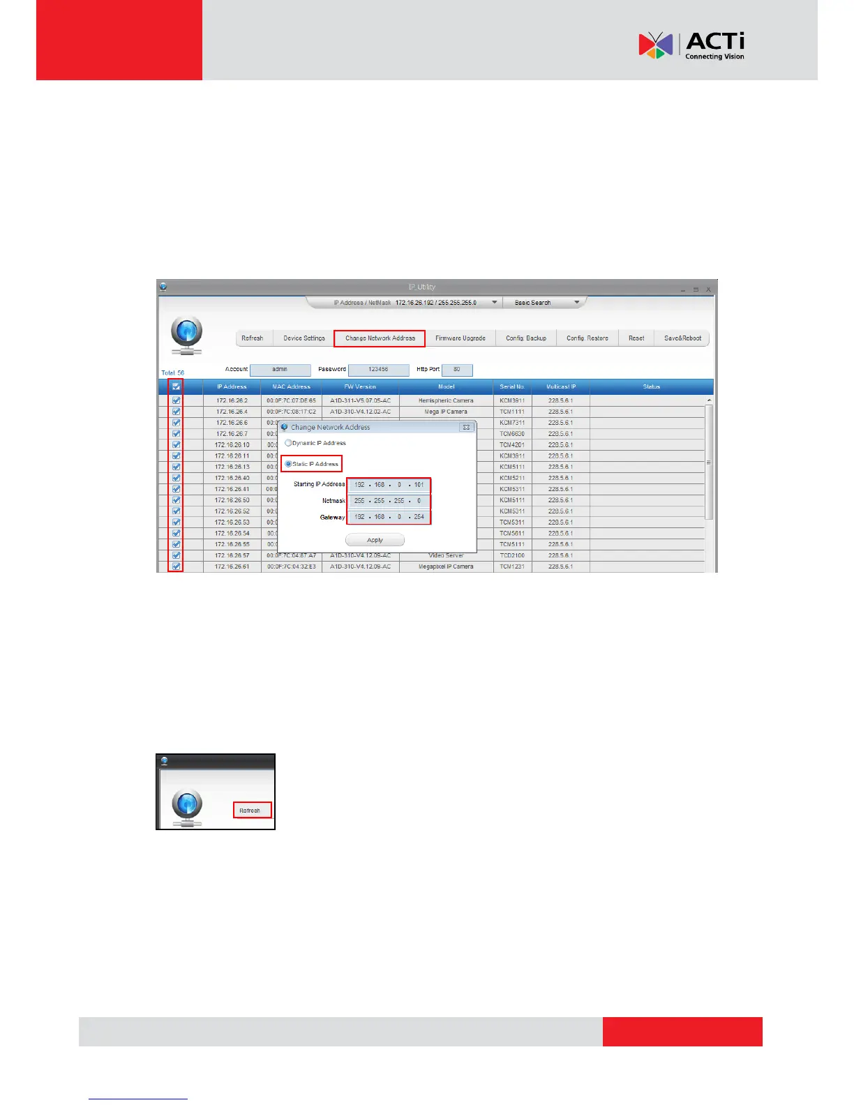 Later, by pressing the “Refresh” button of the IP Utility, you will be able to see the list of cameras