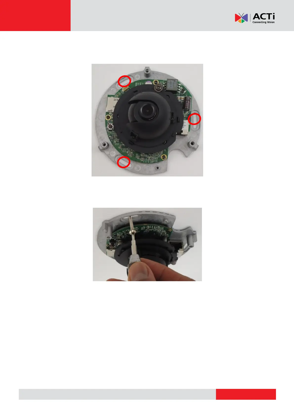 4. Install the camera body to the ceiling using the three (3) screws included in the camera