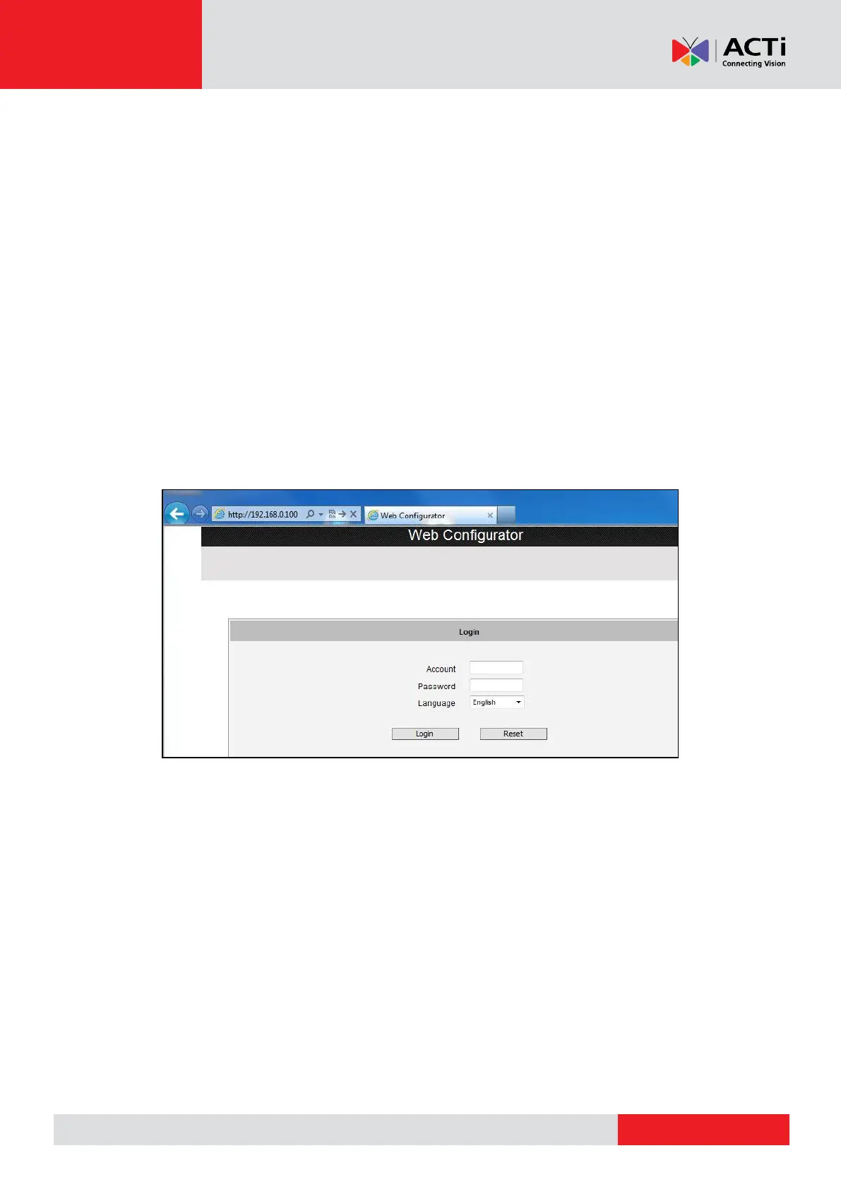 Before logging in, you need to know the factory default Account and Password of the camera.