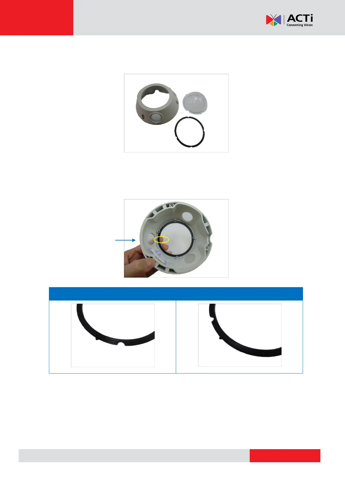 5. Remove the black rubber from the transparent dome cover. Below is an example of the