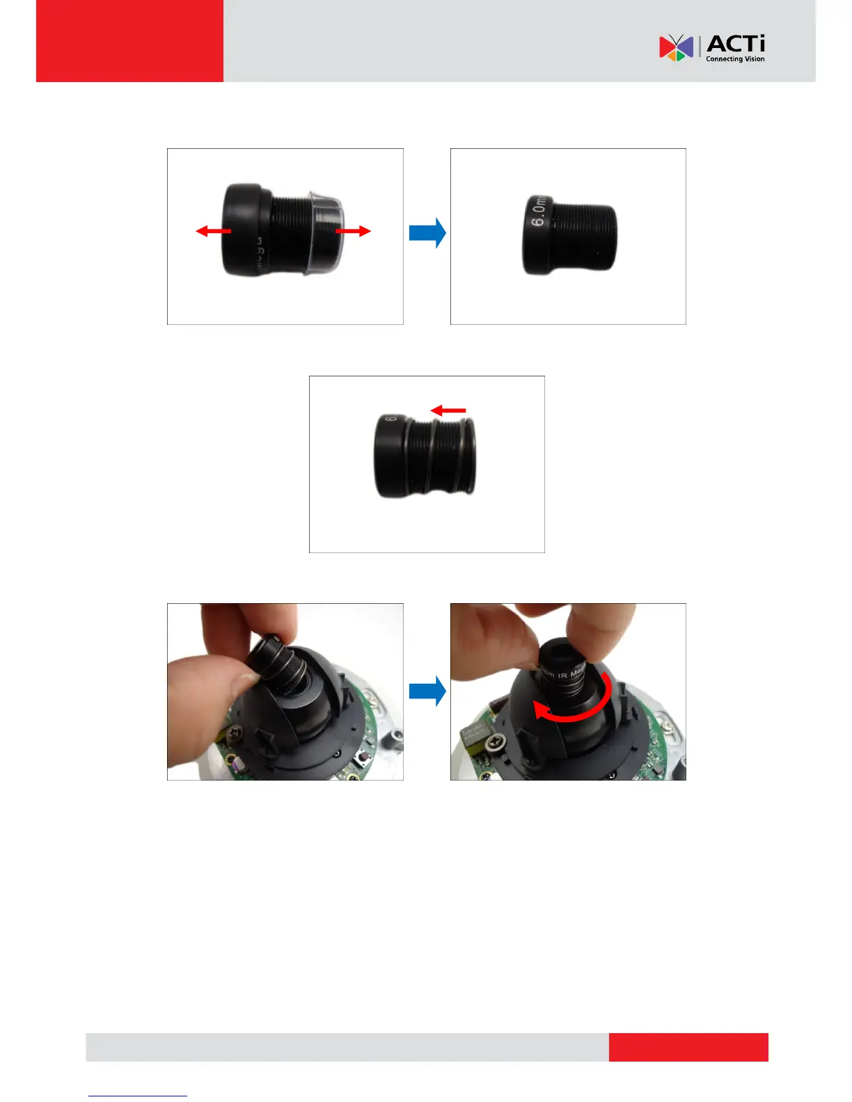 6. Continuously rotate the replacement lens to attach it to the camera.