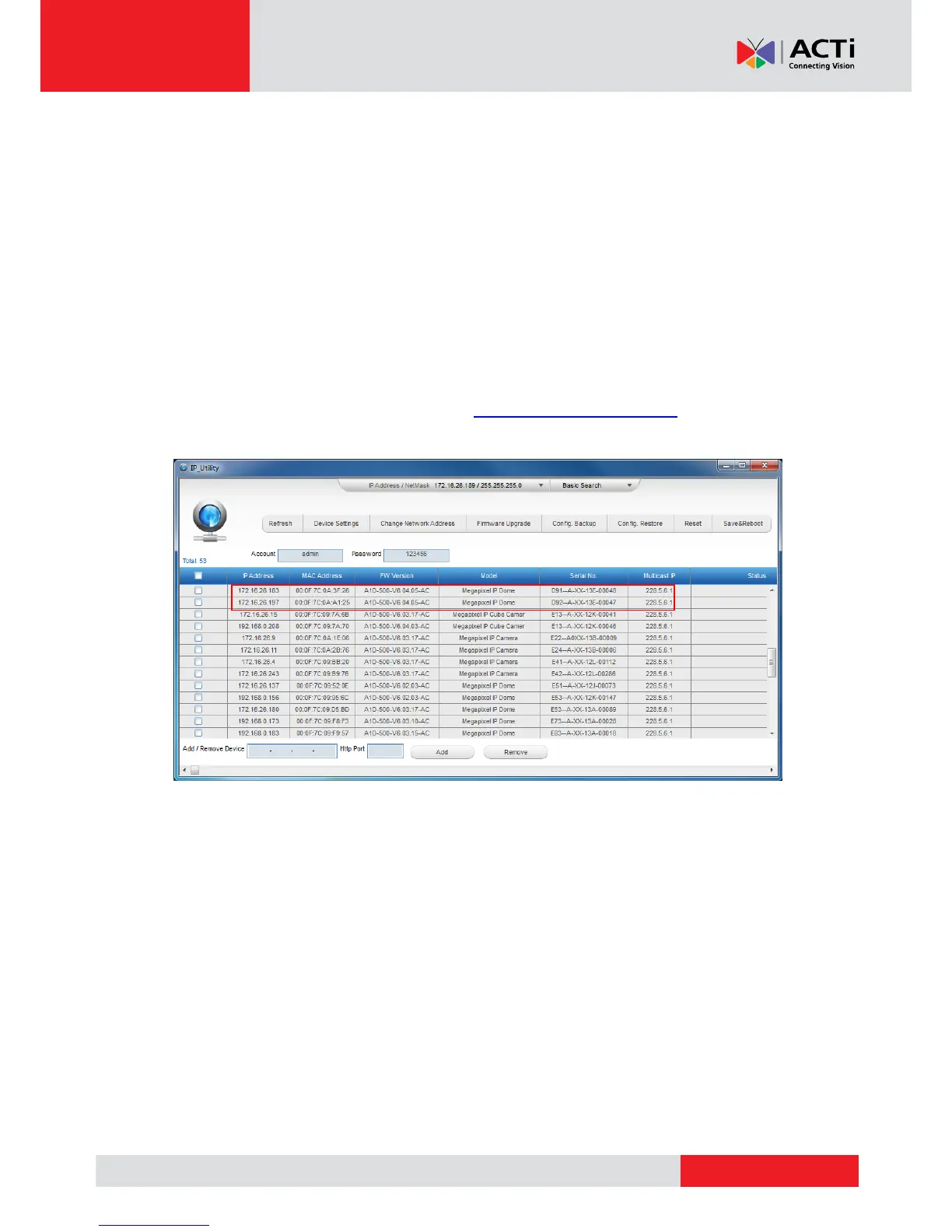 The IP Utility can be downloaded for free from http://www.acti.com/IP_Utility