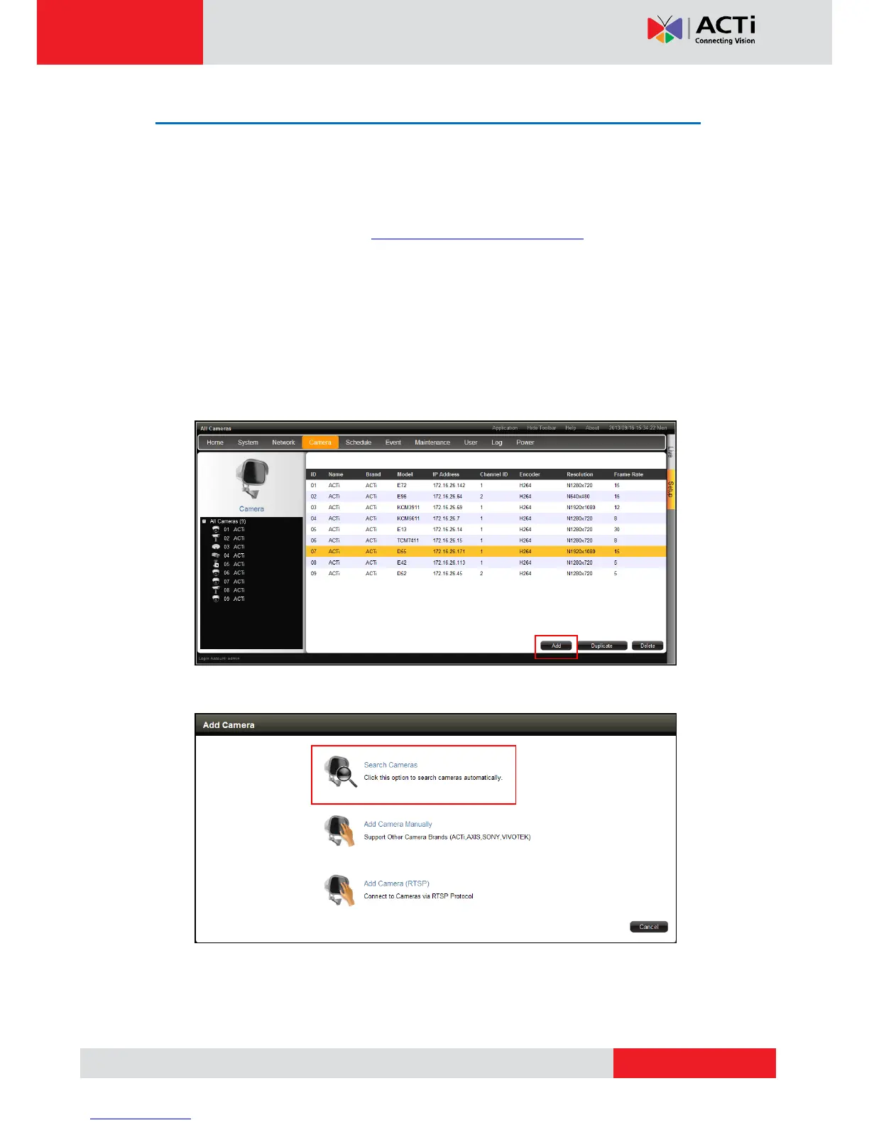 camera or by searching the cameras on the network.