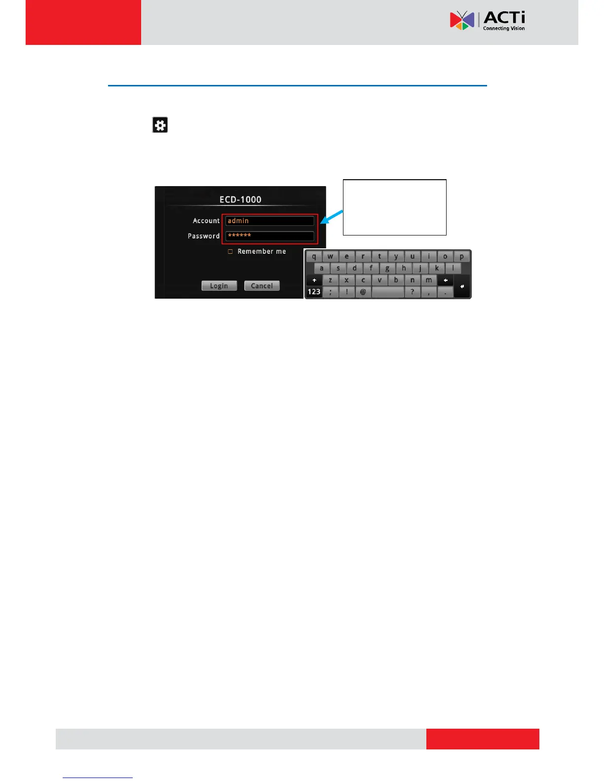 2. When prompted to login, enter the default Account and Password using the on-screen