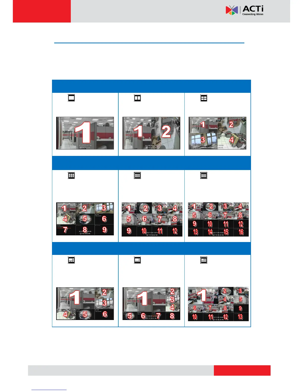 By default, the local Live View is displayed with a 9-channel layout. The layout can be