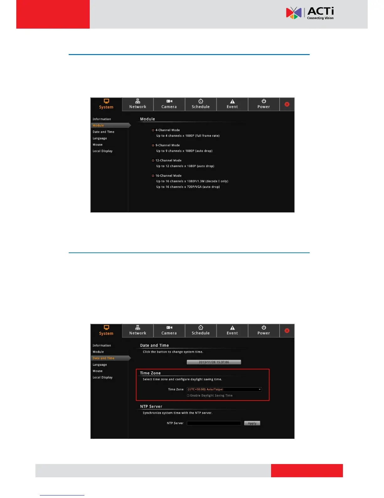 2. On Time Zone, select the desired time zone. The system date and time automatically