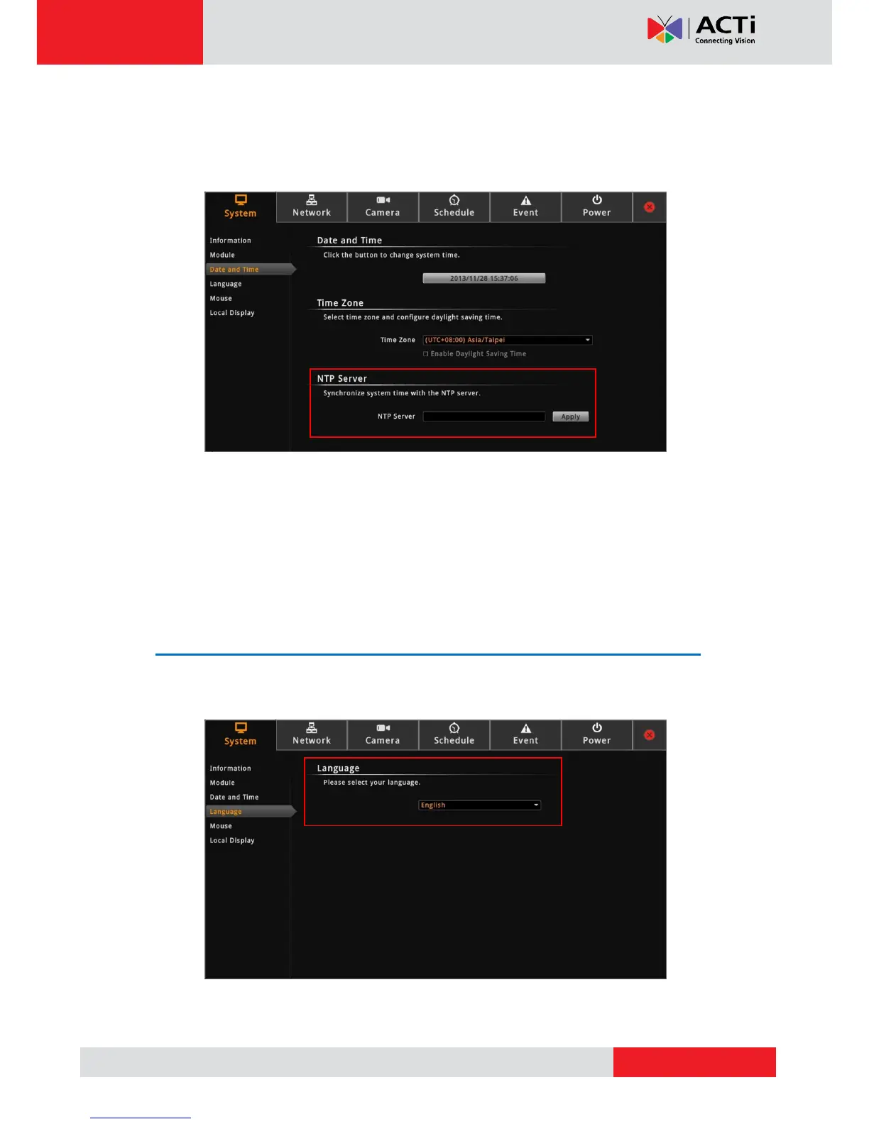 NOTE: If the NTP Server is a domain name, make sure the IP setting and DNS setting of