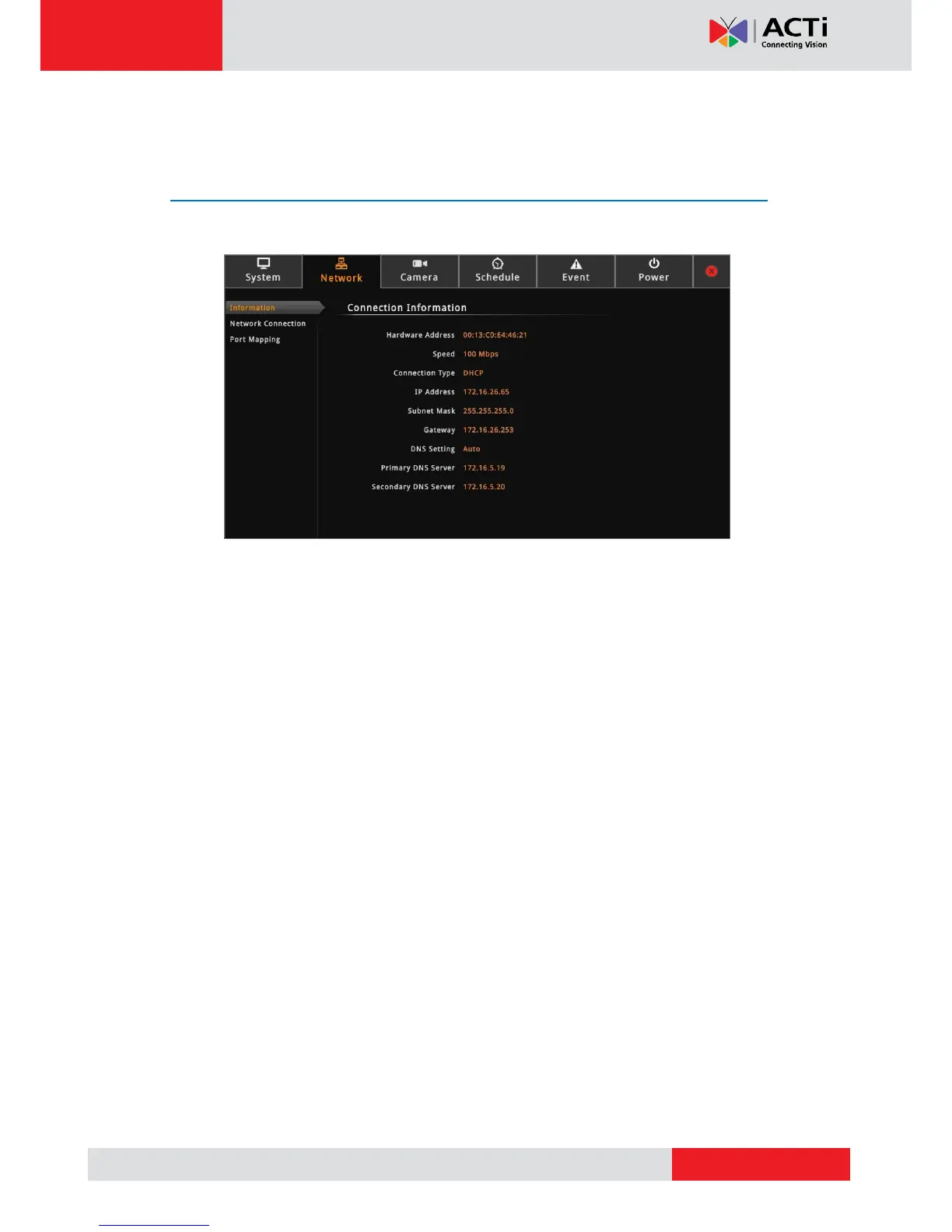 The network information, such as the Hardware Address (MAC address), Speed,