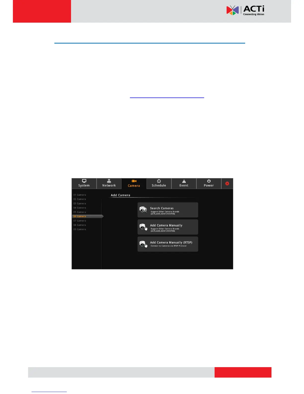 can be integrated, visit our website (http://www.acti.com/3rdpartycamera).